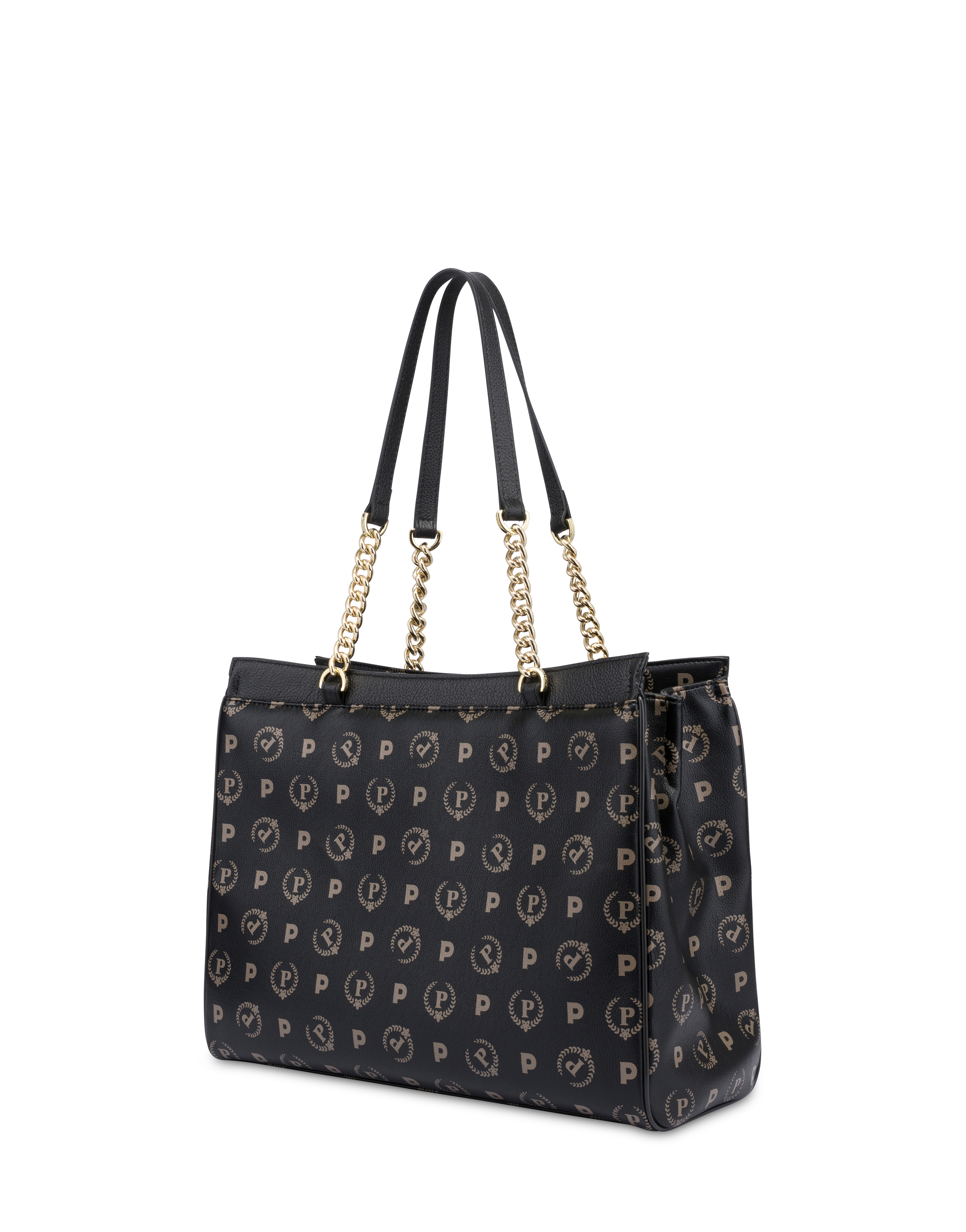 Diese elegante und funktionelle Double Handle Bag in Heritage Re-Edition, die sich durch das Muster in der Makroversion auszeichnet, verfügt über einen doppelten Kettengriff mit Lederschulterriemen für optimalen Komfort. Die Trennwandstruktur verfügt über eine Reißverschlusstasche zur besseren Organisation. Ausgestattet mit zwei separaten Innenfächern und einer Innentasche mit Reißverschluss garantiert sie maximale Praktikabilität. Der Magnetverschluss sorgt für Sicherheit und Benutzerfreundlichkeit, während die Details in Light Gold-Galvanik das Design mit einer raffinierten Note vervollständigen.