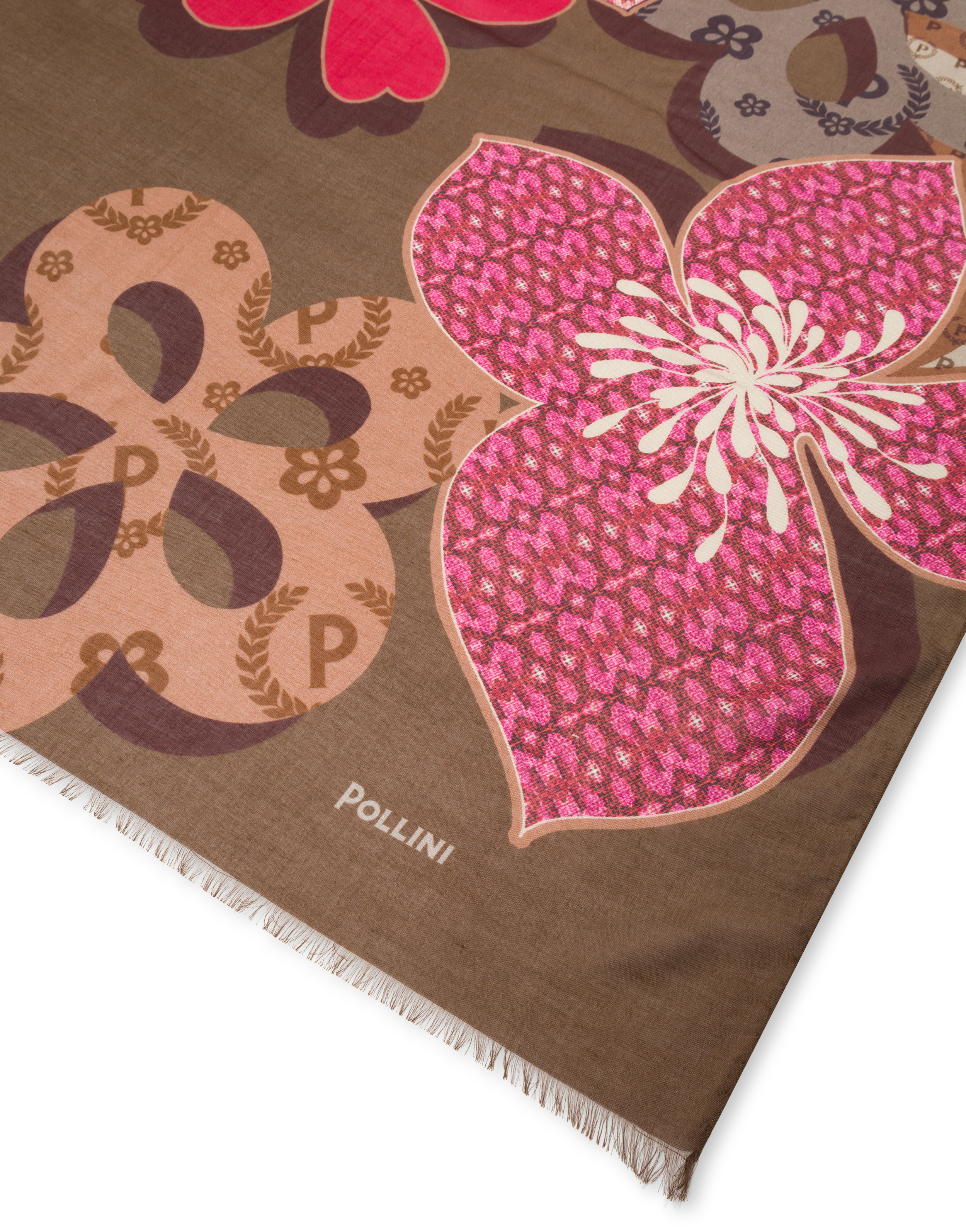 Schal aus weichem Modal mit Blumendruck und All-Over-Logo.