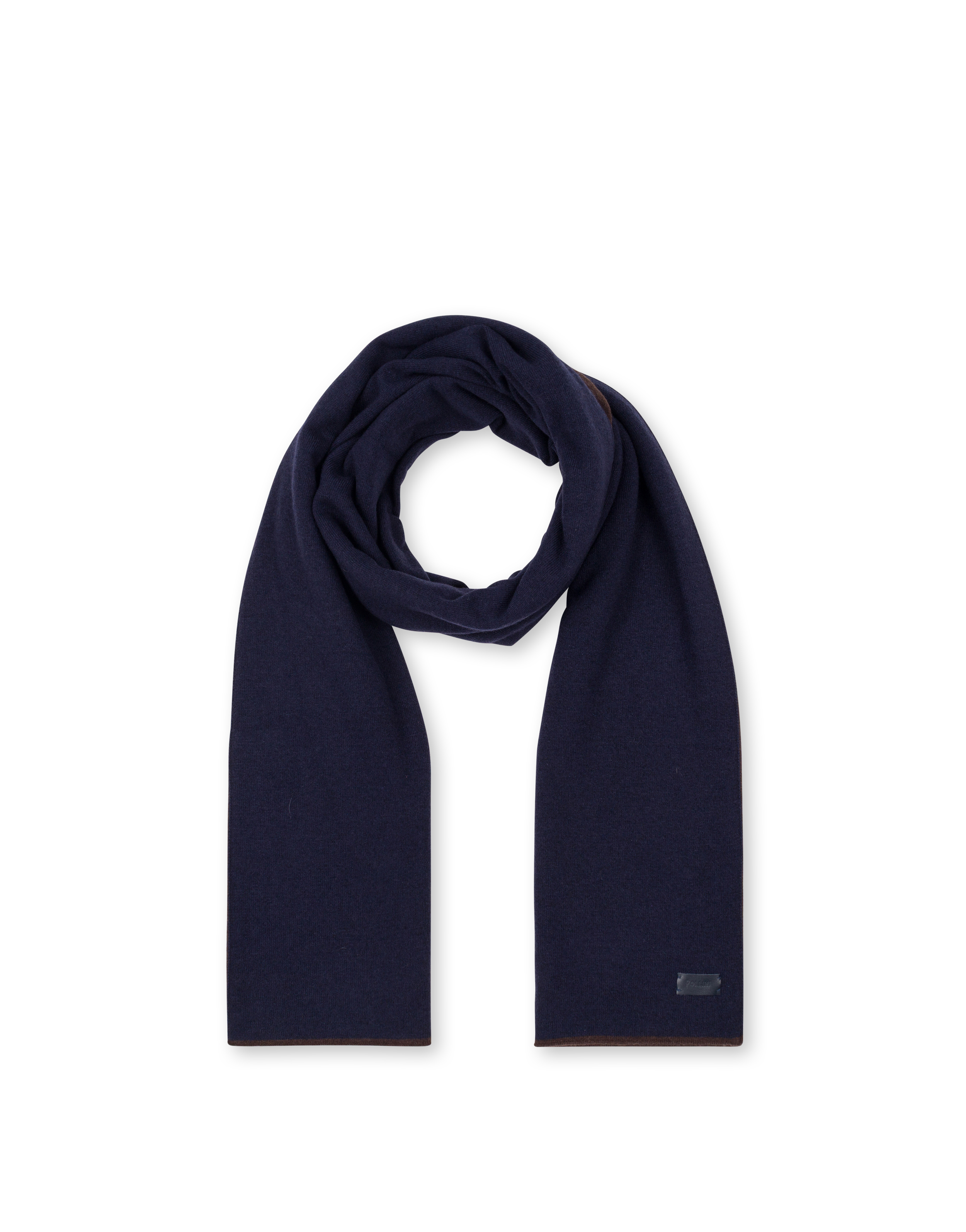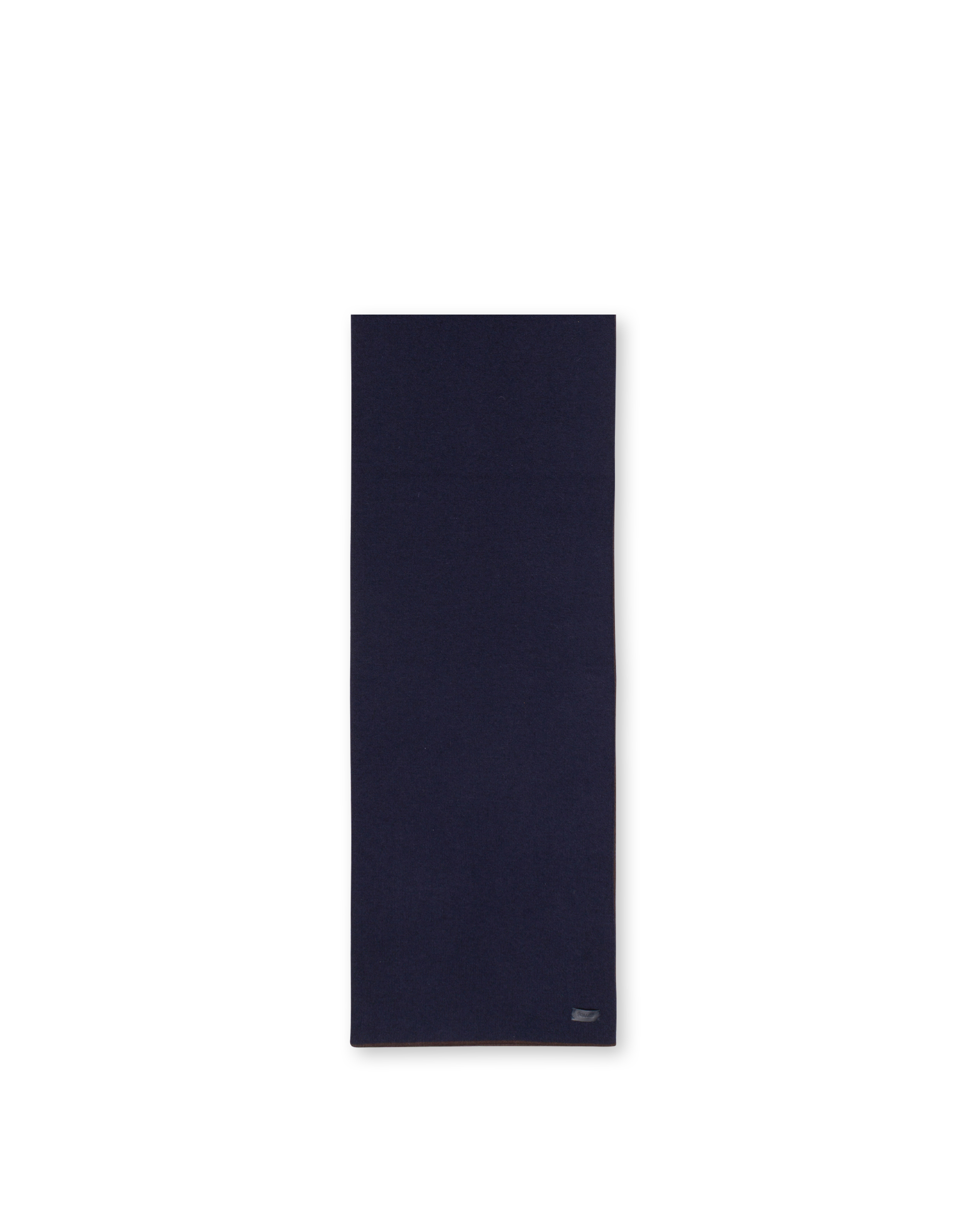 Schal aus zweifarbiger Wollmischung. Die Vorder- und Rückseite sind in kontrastierenden Farbtönen gehalten. Leder-Logo-Label am Rand.