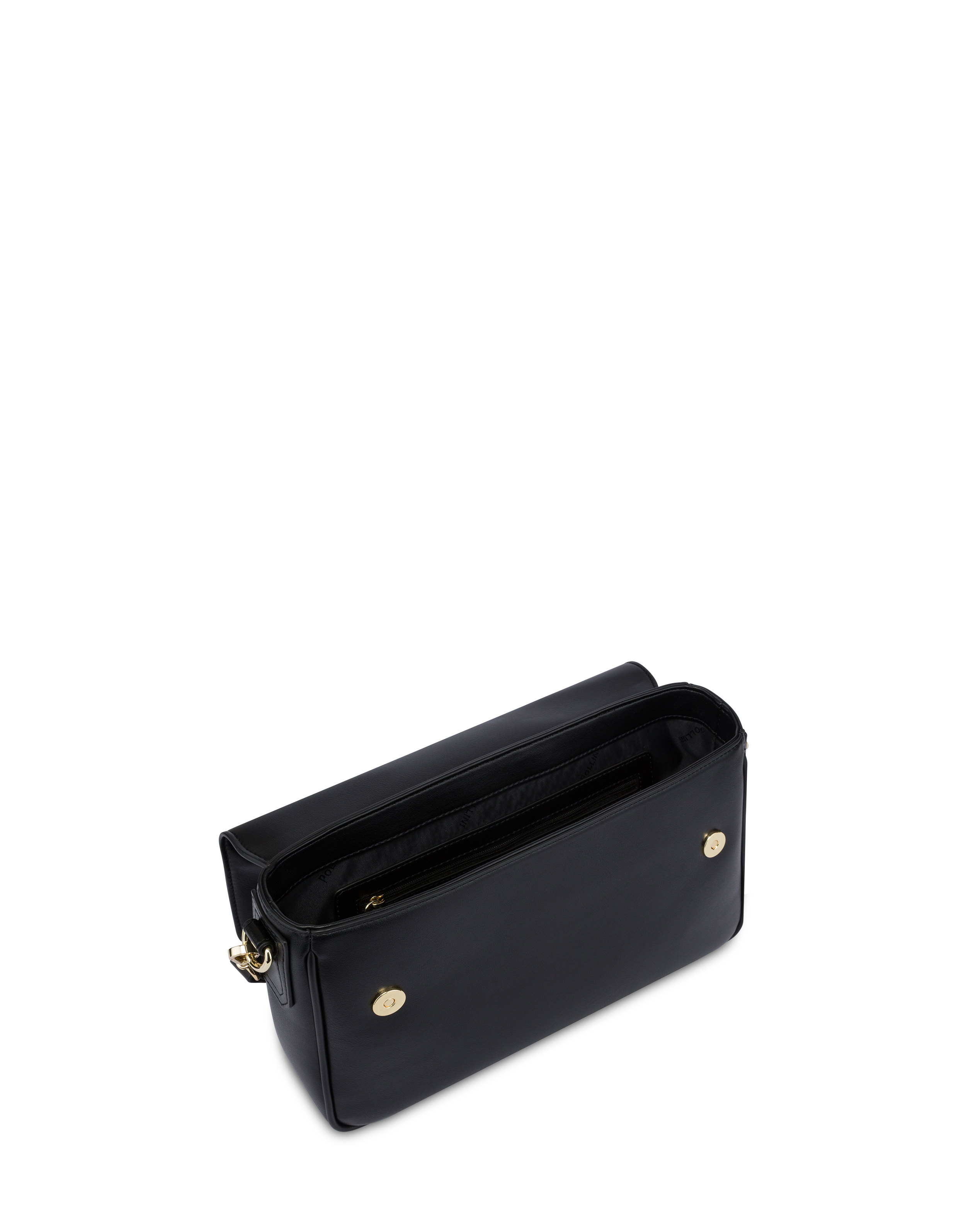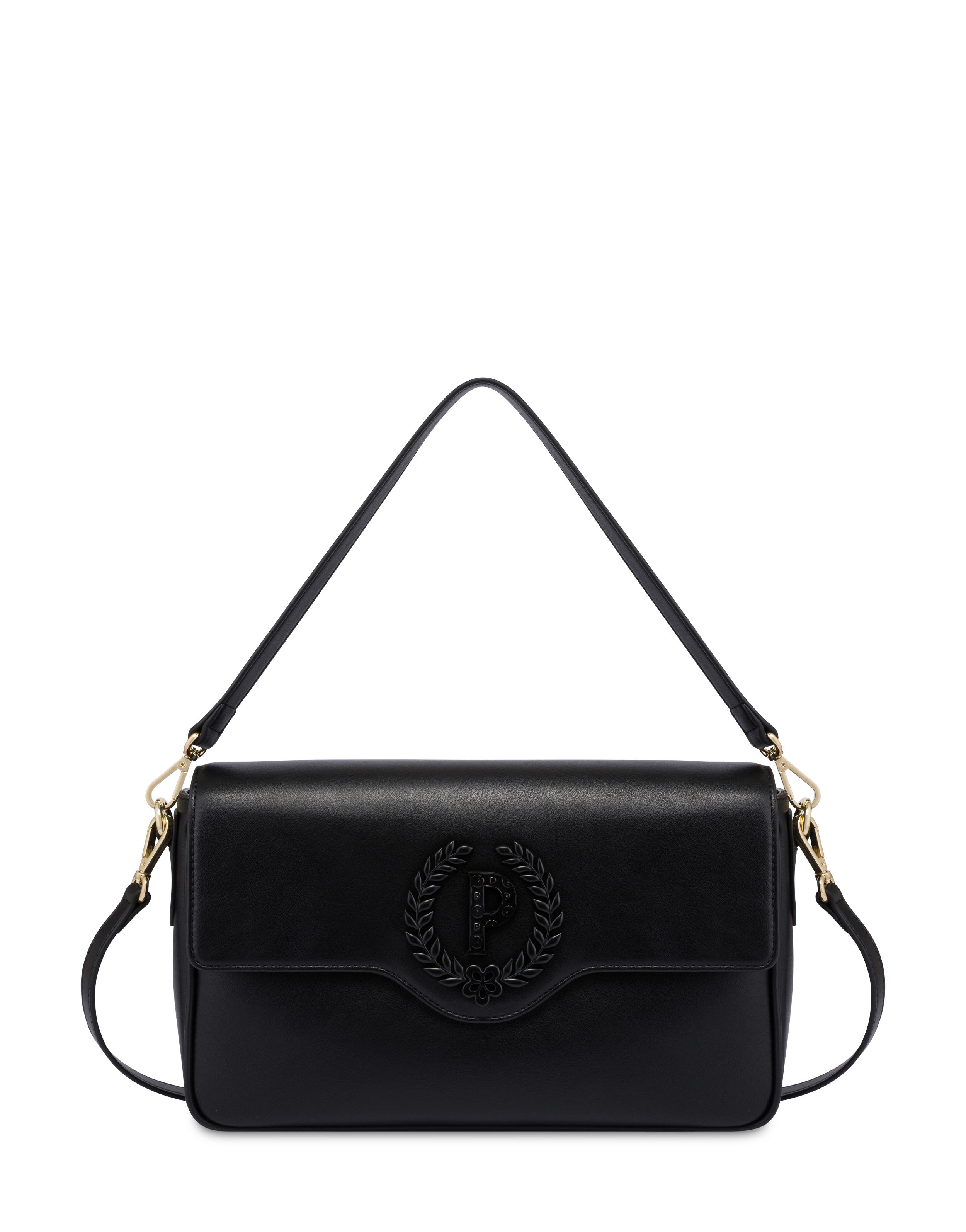 The iconic Candy Bag is updated as a bigger version, with a softer and more deconstructed design. Featuring a structured shape enhanced with piping, it has a removable leather shoulder strap and a second crossbody strap that provide practical and versatile dual portability. The magnetic closure ensures quick and secure access, while the interior, organized with a zipper and small pocket, combines capacity and functionality. The design is completed by the discreet and distinctive Pollini 'P' logo.