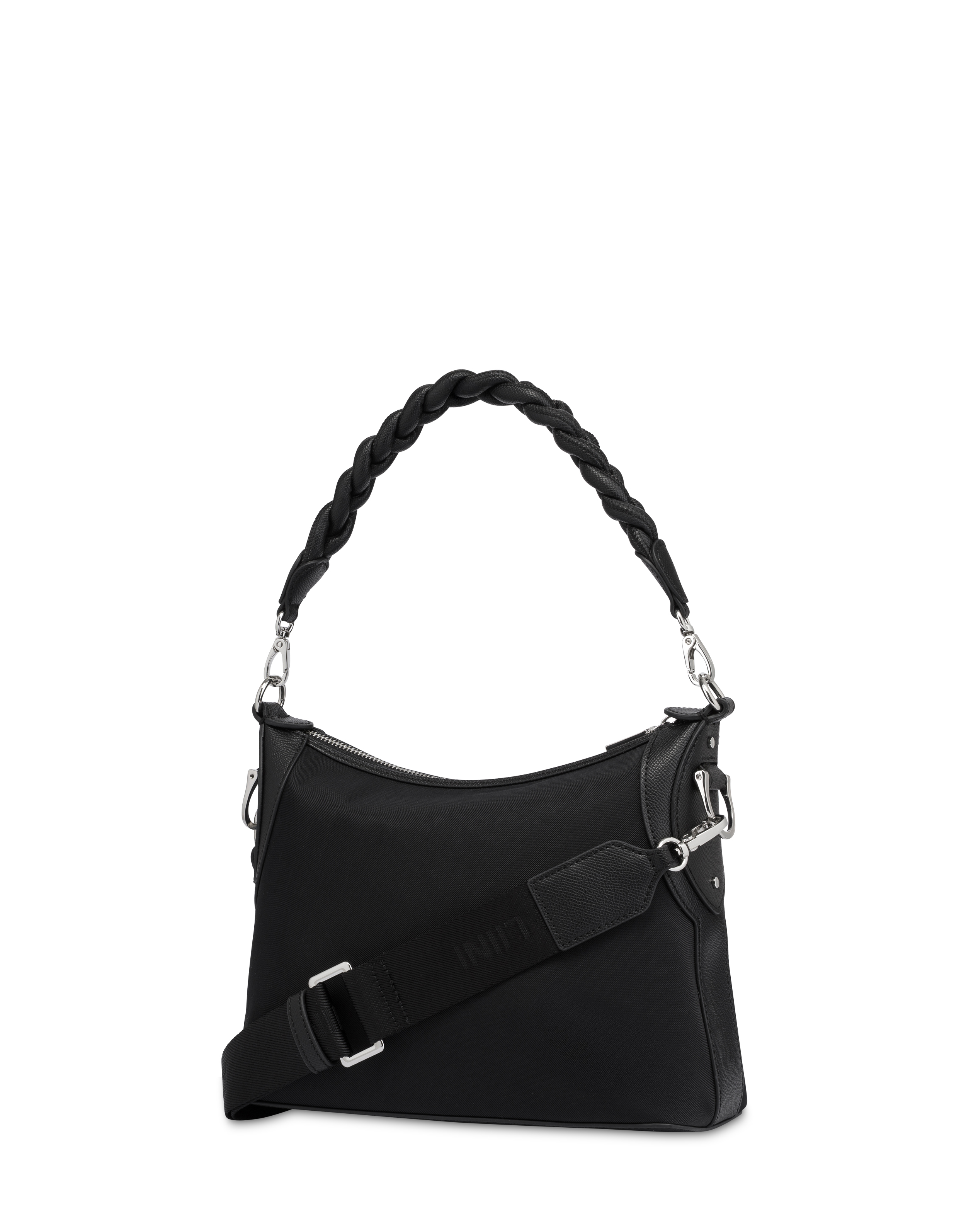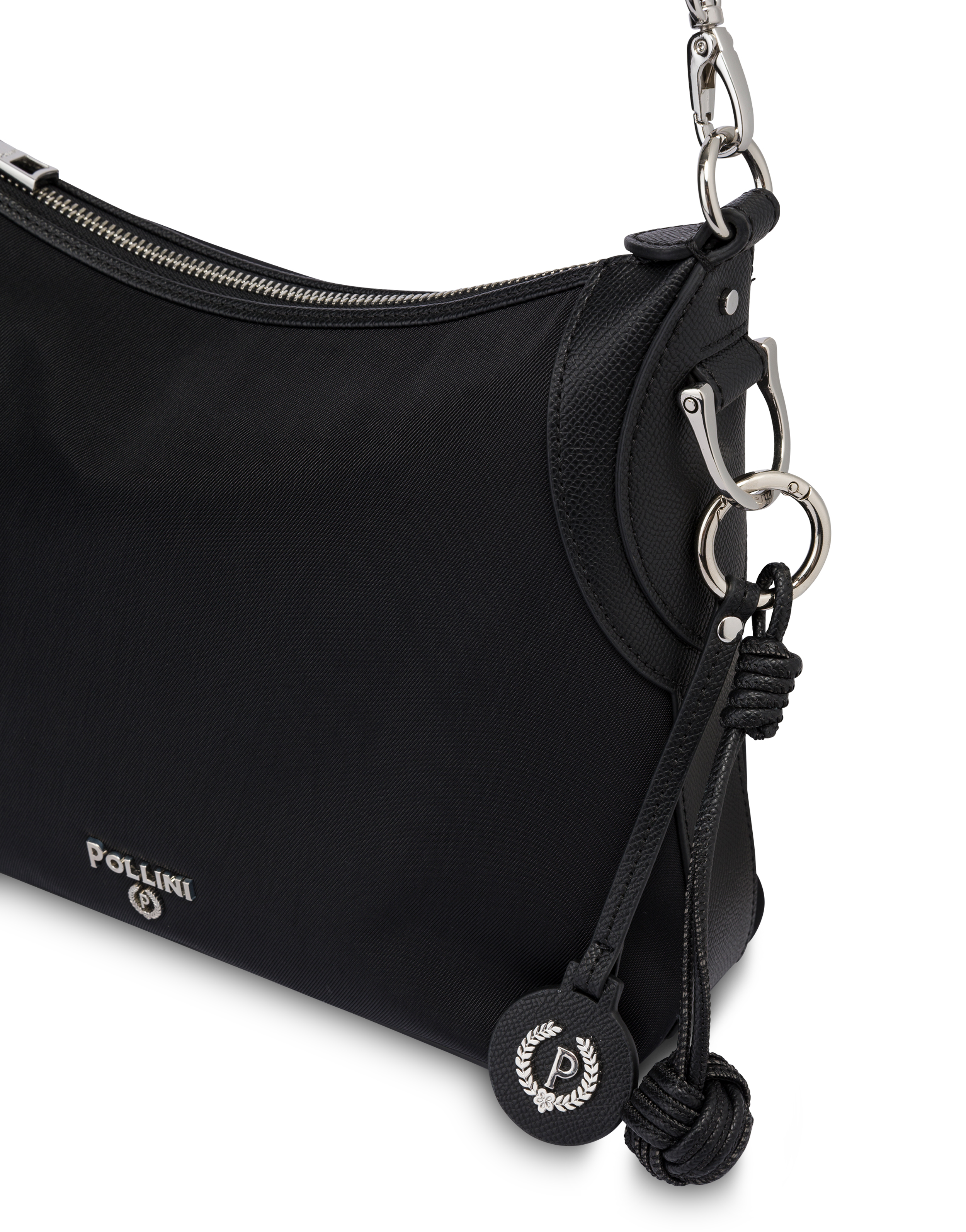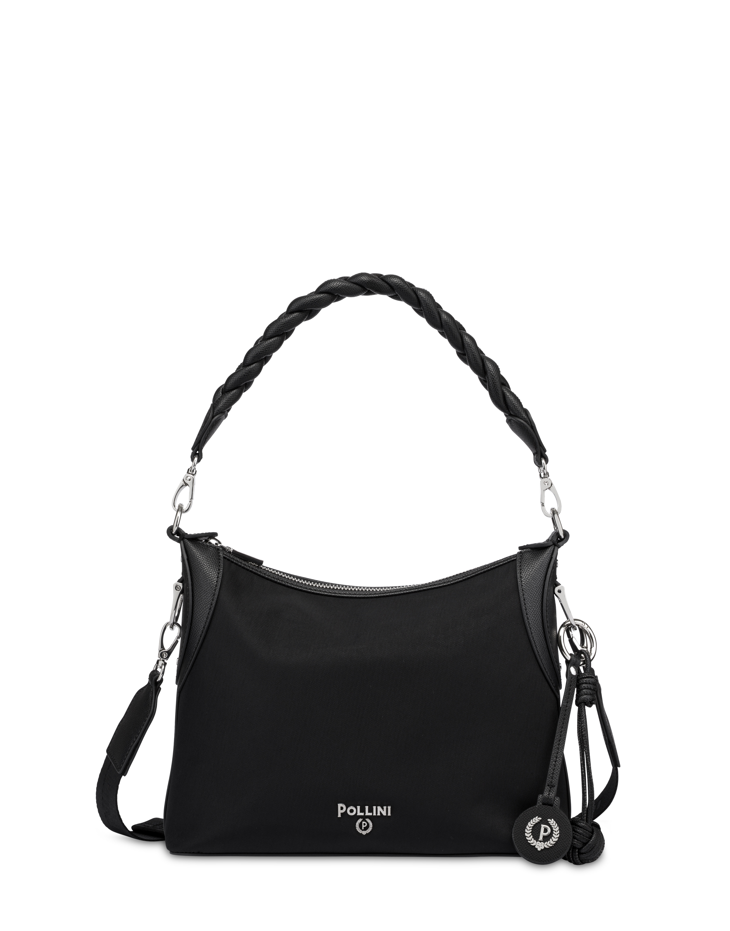 Elegant and sophisticated, this bag is made of a fine mix of materials that enhances the attention to detail and the distinctive Pollini design. The removable braided handle combines functionality and refinement, while the adjustable shoulder strap in logoed jacquard guarantees practicality and style on any occasion. Perfect for everyday use, it is enriched with nickel metal finishes and the iconic 'P' Laurel charm, which add a unique touch to any outfit.