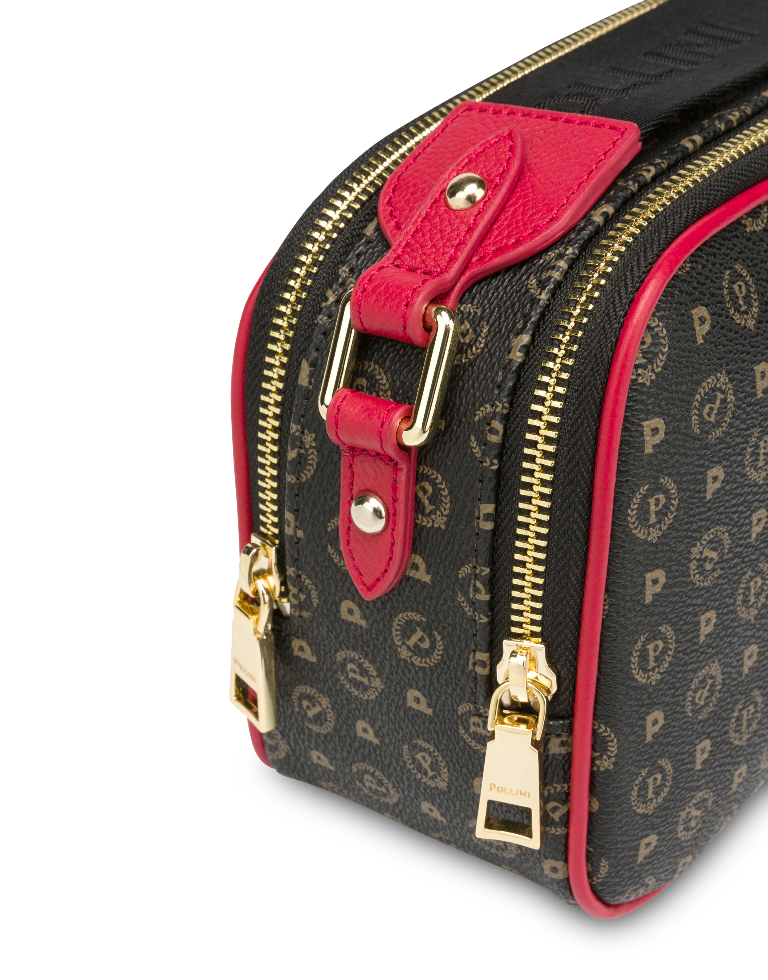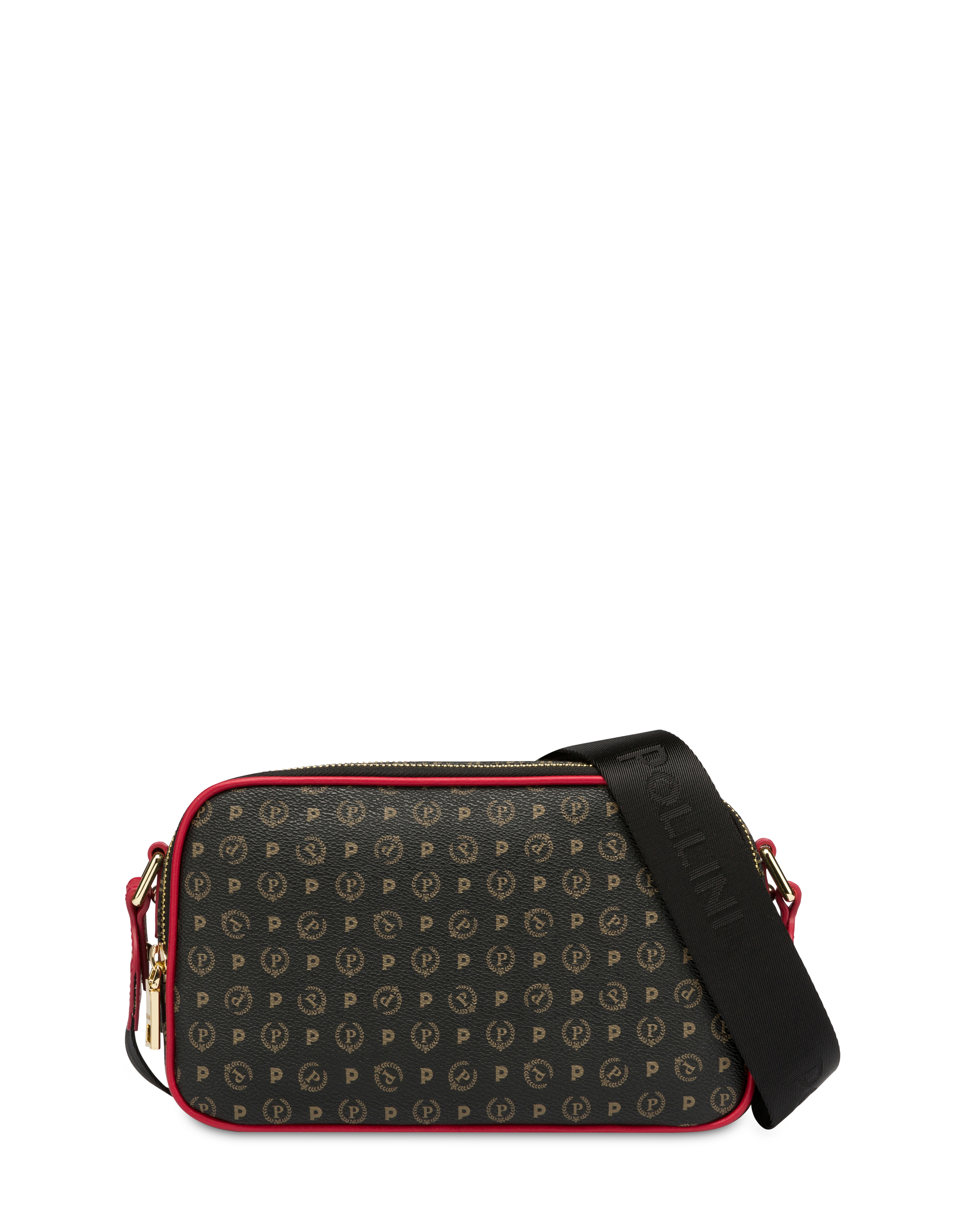Heritage Logo Classic collection camera bag with double compartment with zip. Monogram with P-laurel logo printed all over. Nylon shoulder strap with jacquard logo.