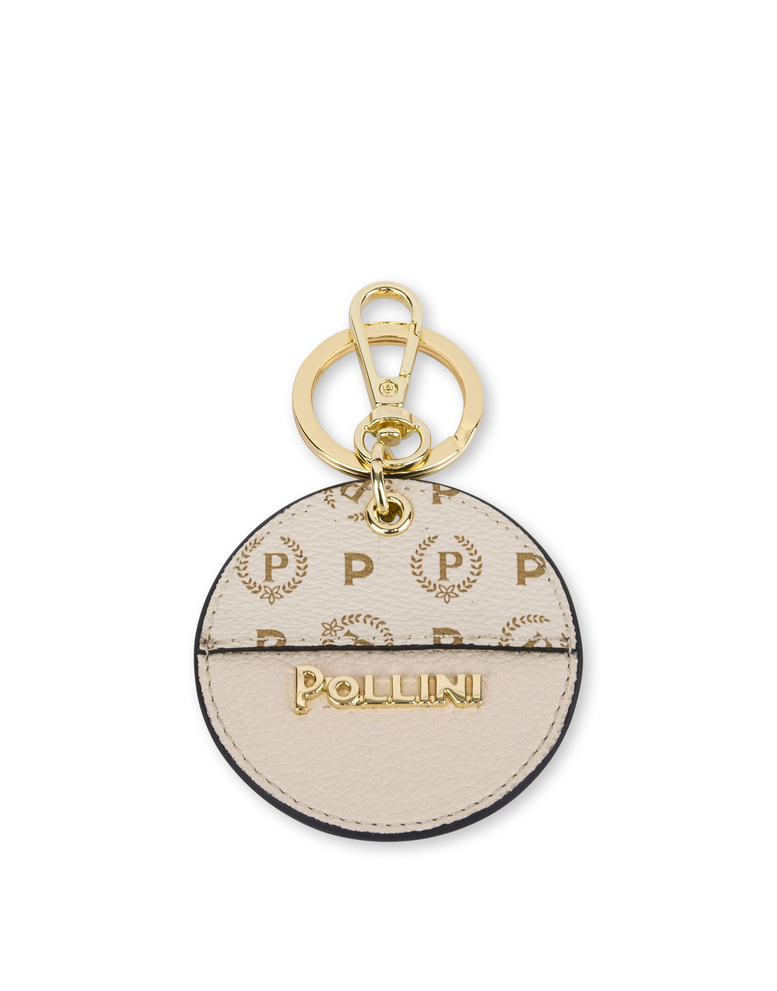 An iconic accessory that enriches small leather goods with its mix of functionality and style. This keychain, embellished with the embossed 'Pollini' logo and metal snap hook, represents the essence of the brand's elegance. Practical and sophisticated, it is perfect for adding a distinctive touch to bags, backpacks, or belts, completing every look with sophistication.