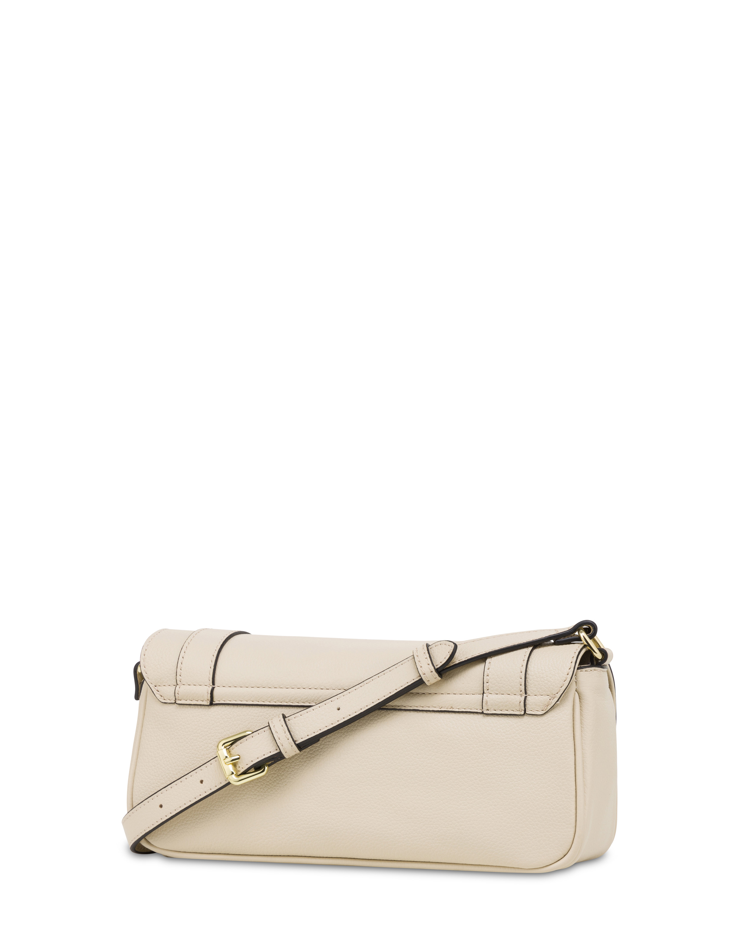 Soft, round shoulder bag crafted from tumbled calfskin, featuring a tubular handle and shoulder strap. Enamel logo plate attached to the front panel. The silhouette is accentuated by leather bands adorned with small studs, adding a touch of brightness. Adjustable shoulder strap for dual wearability.