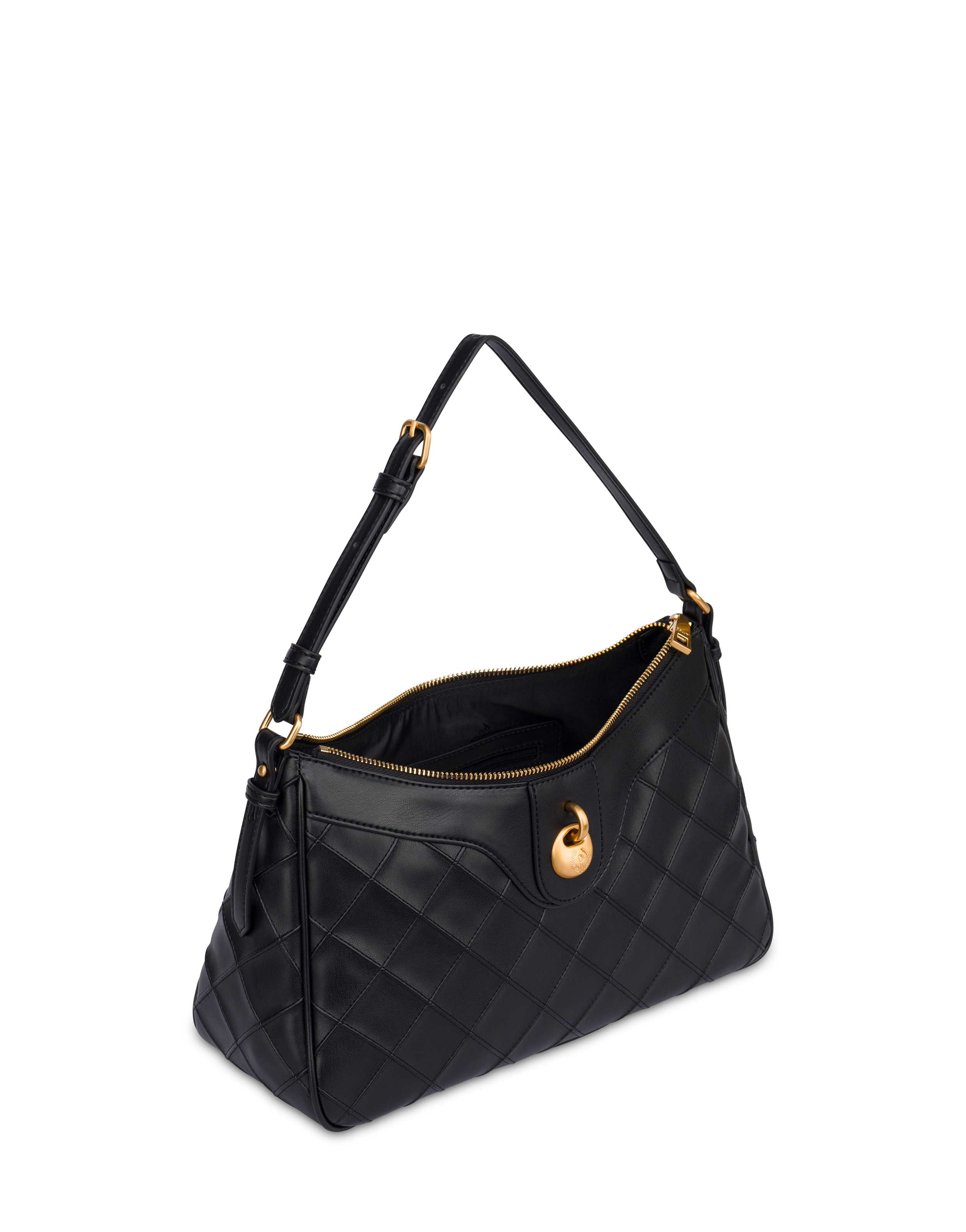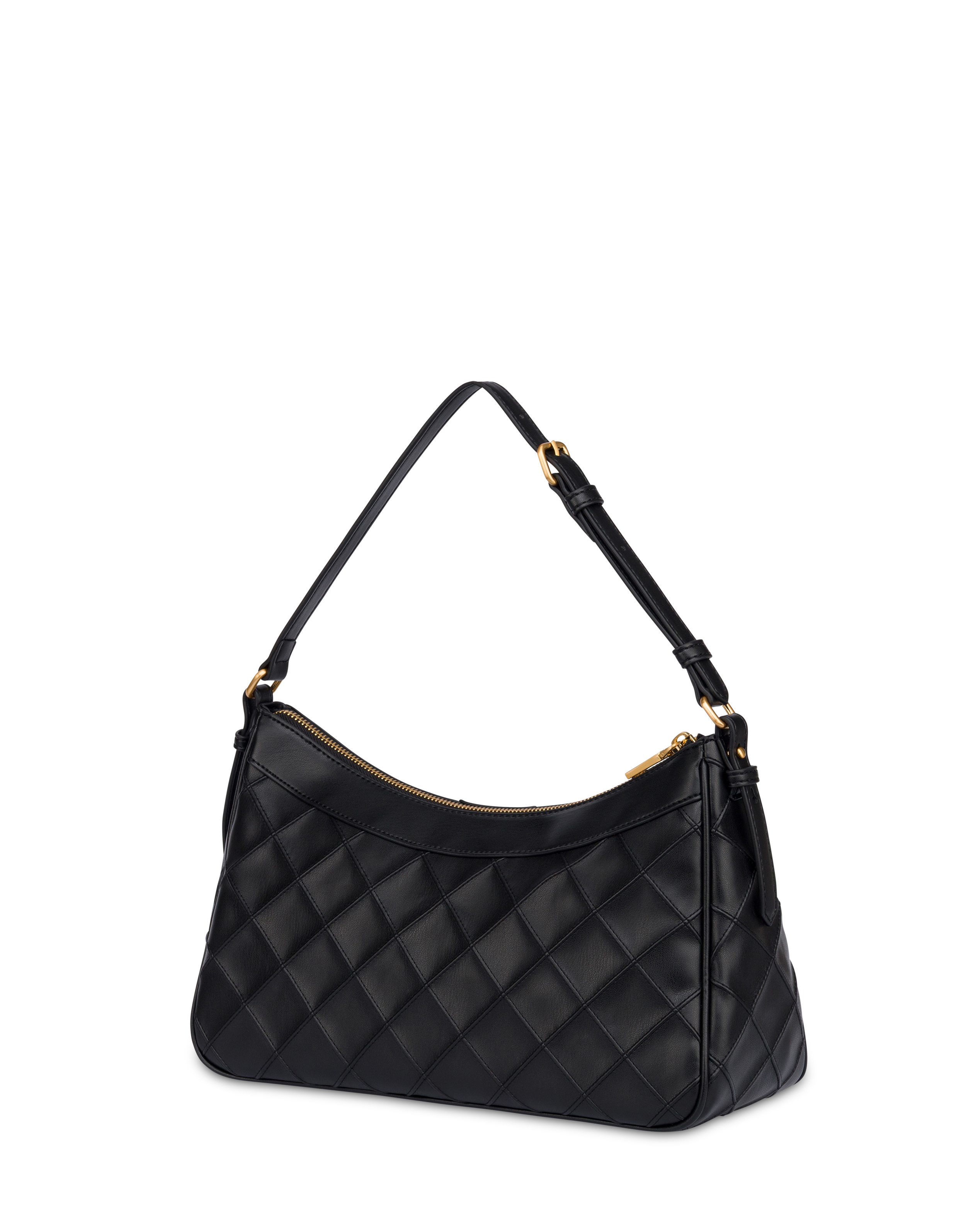 Shoulder bag with adjustable handle, practical and versatile thanks to the zip closure. Compact but with the perfect capacity, it is ideal for any occasion. The matelassé-effect workmanship gives the bag a modern texture, while the refined spherical metalwork engraved with the 'P' laurel logo adds a distinctive touch. The contoured details, with harmonious lines, complete the design, creating a perfect balance between style and functionality.