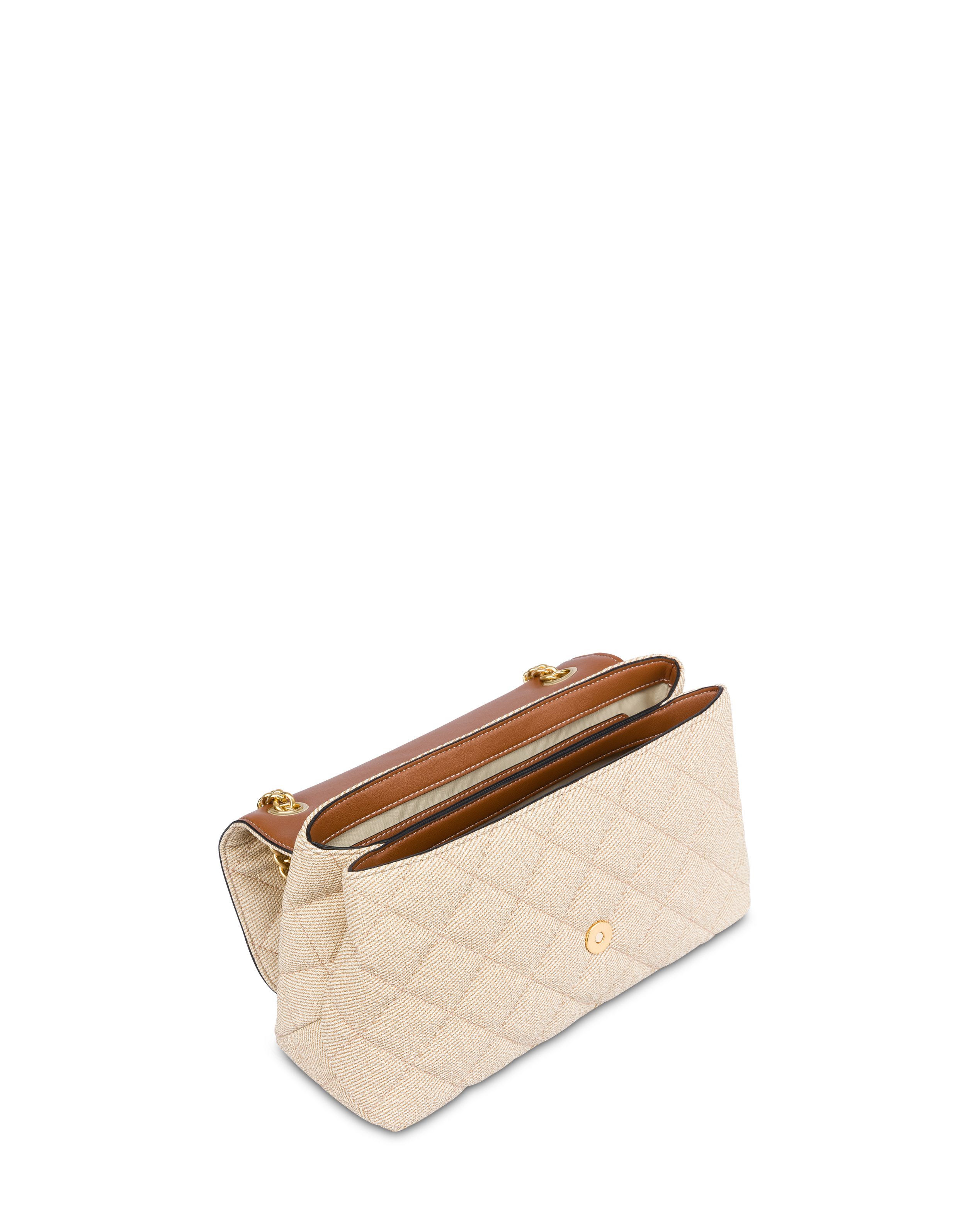 The Shoulder Bag expresses urban elegance with a contemporary flair. The structured design, made of soft material, combines lightness and craftsmanship, while the quilted workmanship enhances the model with a refined modern touch. The shoulder strap with chain in a light gold finish completes the bag with a bright detail and gives the possibility of dual portability.