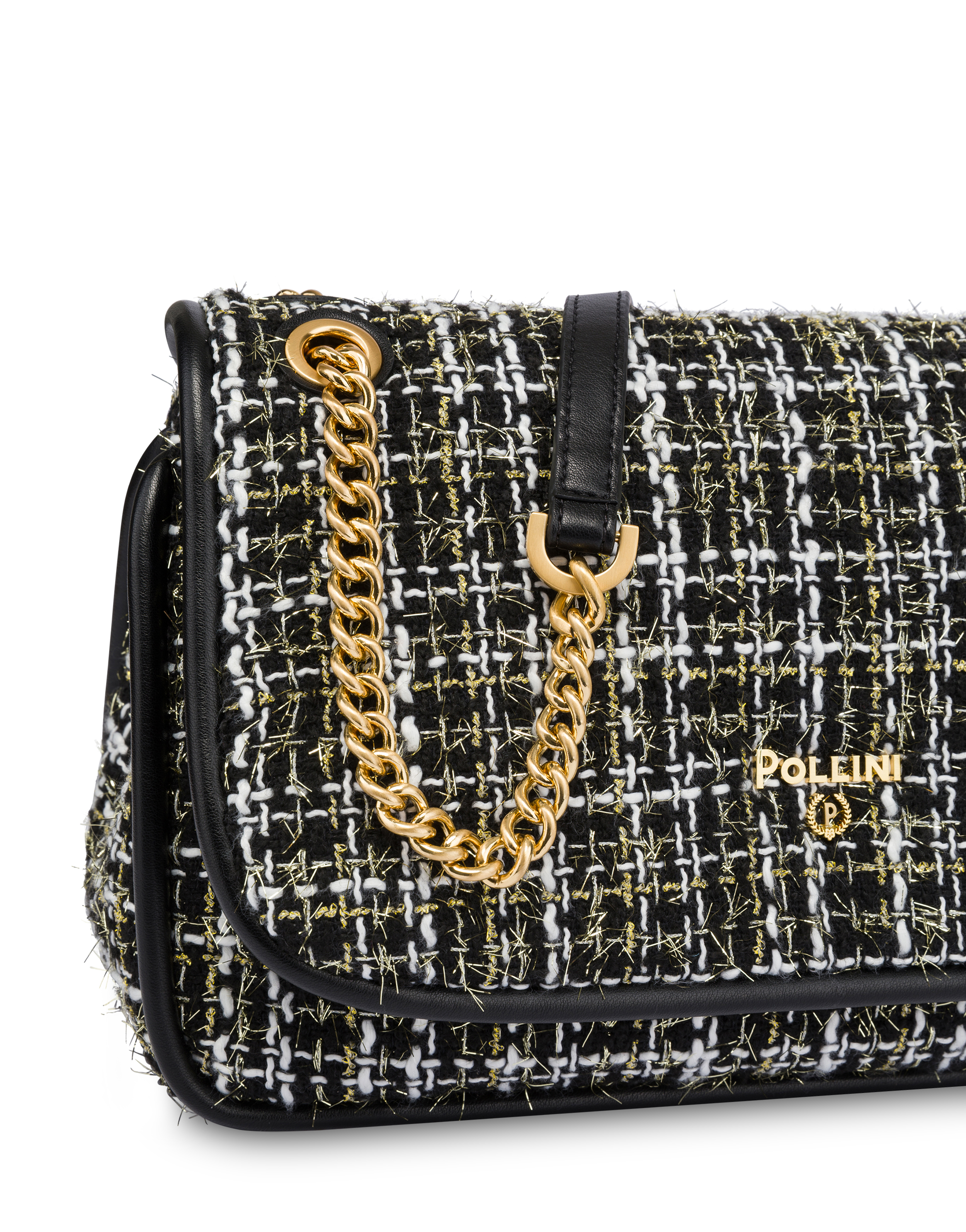 The Waltzer Night Shoulder Bag embodies a timeless, sophisticated style, capable of enhancing even the most minimalist looks. Interwoven with metallic gold thread, the bouclé fabric enhances this hint of shimmer with discreet sophistication. The well-defined lines give structure to the silhouette, while the gold-plated accessories add a rich contemporary feel. Versatile and sophisticated, it lends itself to being worn both over the shoulder and crossbody, elegantly accompanying you throughout the day.