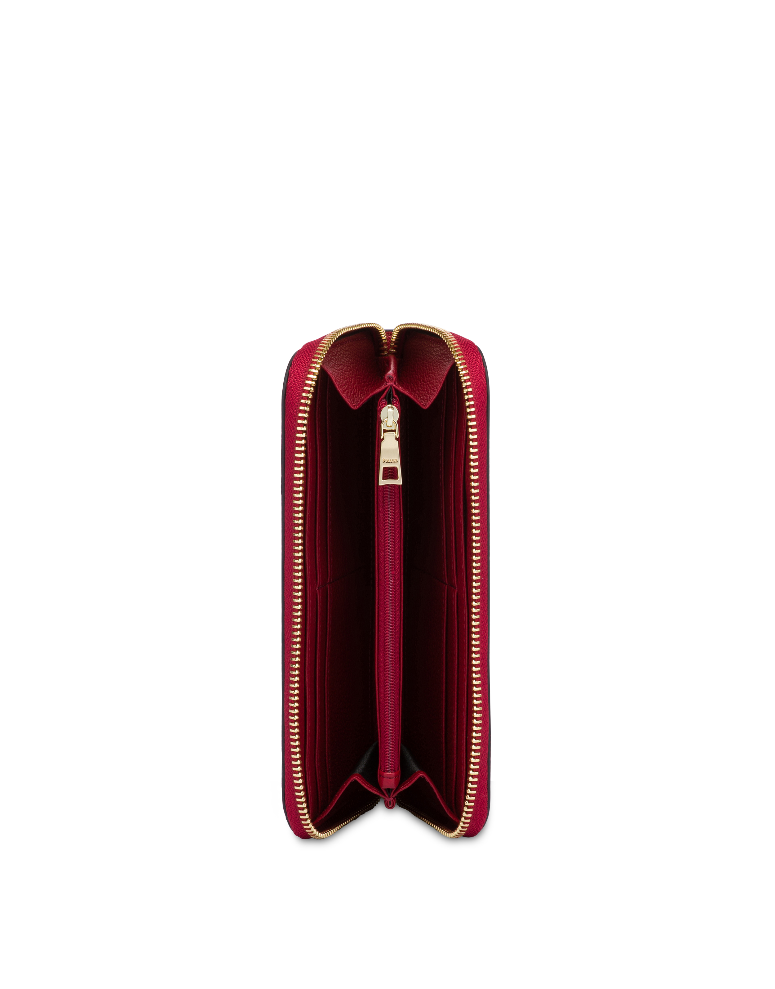 'Elegance and functionality come together in this Zip Around wallet, which stands out for its sophisticated design embellished by a horizontal band with the 'Heritage' motif. The gold zip closure ensures security and style. The interior is perfectly organized with two spacious compartments, a central zip coin pocket, and numerous spaces for cards and documents. The iconic gold metal 'P' laurel logo adds a distinctive and sophisticated touch.'