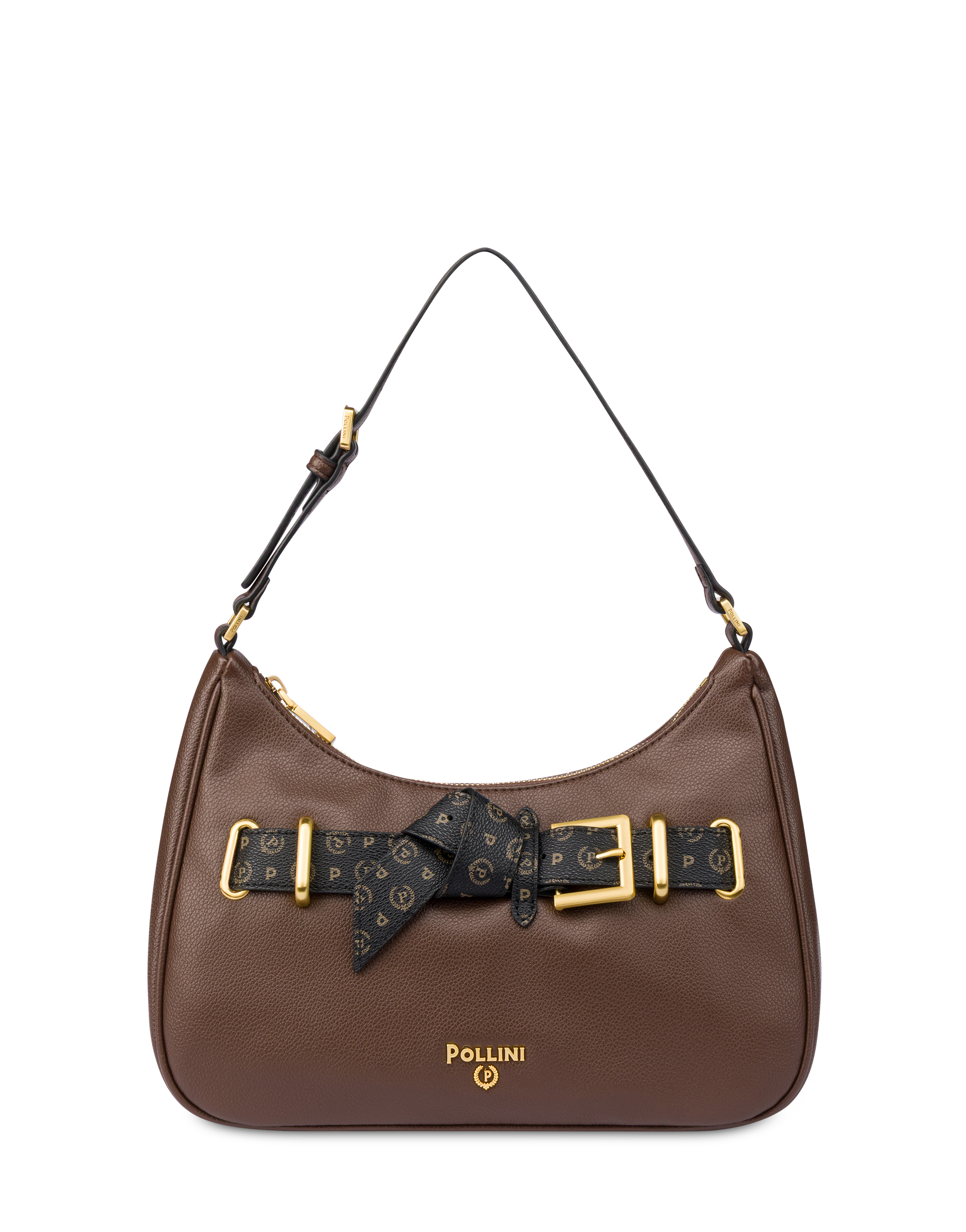 Design contemporaneo e funzionalità si incontrano nella Hobo Bag Belt, definita dall’iconica cintura decorativa con motivo Heritage, che valorizza la silhouette con carattere e originalità. Le finiture in metallo brush gold illuminano il design con eleganza discreta. Compatta ma capiente, è dotata di manico regolabile, chiusura magnetica e interno foderato con tasca zip, per accompagnare con stile ogni momento della giornata.
