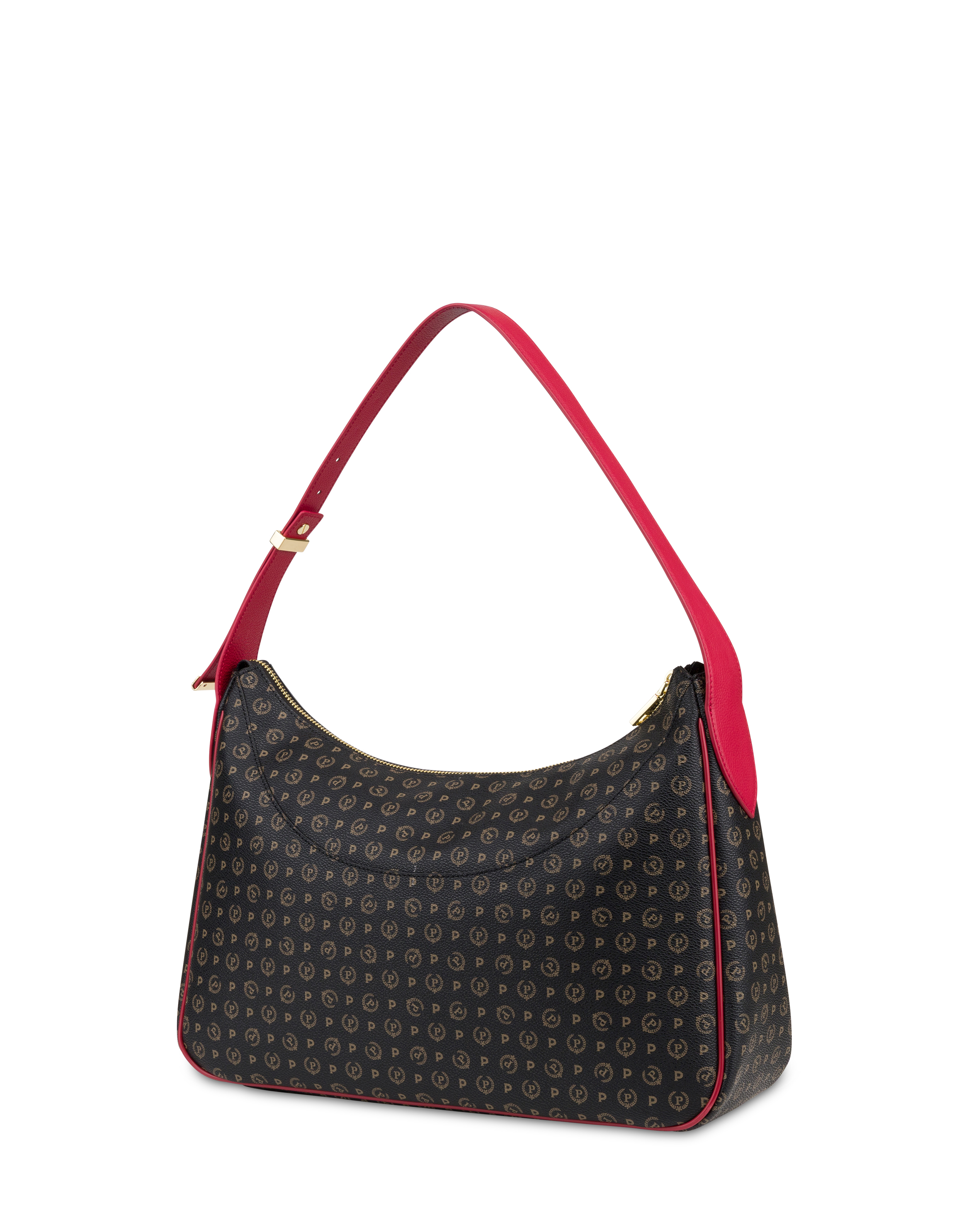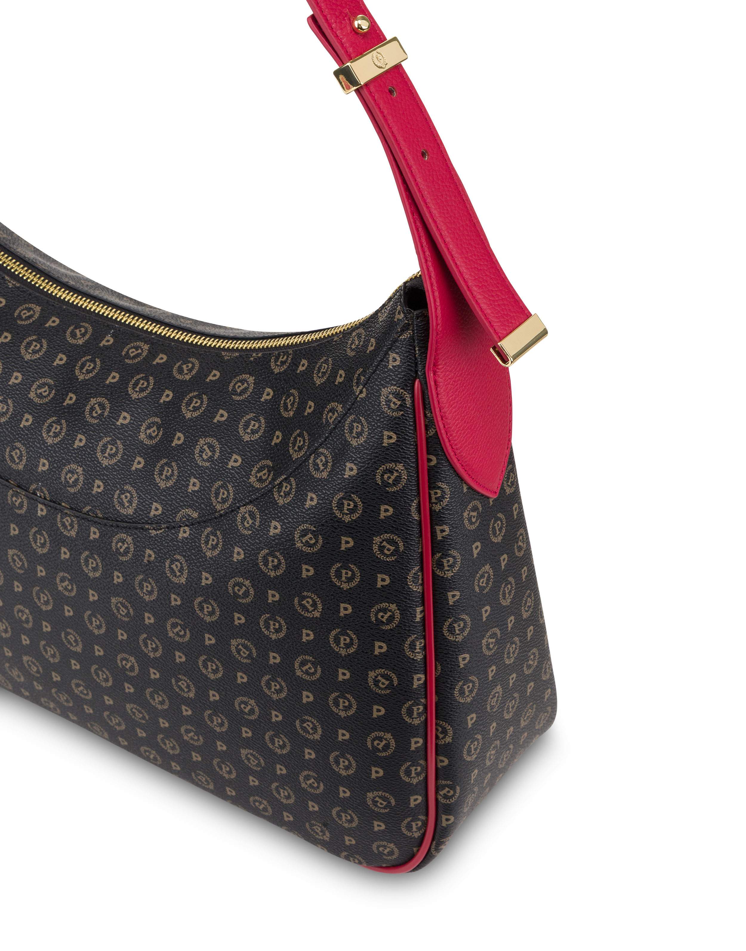 Hobo Bag dal design geometrico e contemporaneo, con manico regolabile che ne valorizza la versatilità. Gli accessori metallici logati “P” in galvanica light gold illuminano la silhouette con un tocco sofisticato. La chiusura con zip assicura praticità, mentre i manici e i profili in vitello a contrasto evidenziano l’eleganza dei colori e la cura dei dettagli, rendendo la borsa l’accessorio ideale per coniugare stile e funzionalità.