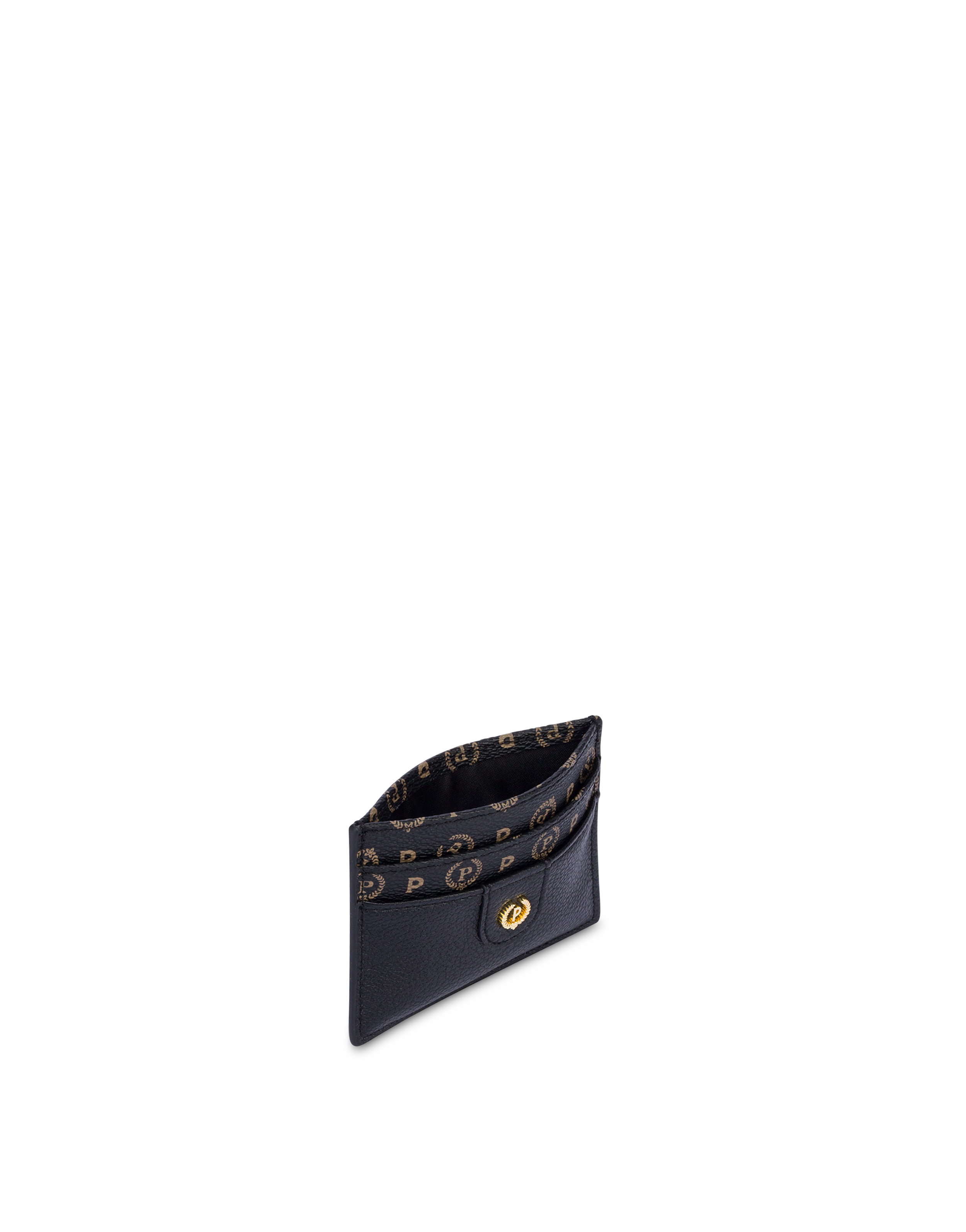 'Compatto, elegante e funzionale: il portacarte firmato Pollini è l’accessorio ideale per custodire l’essenziale con stile. E' impreziosito dalla banda orizzontale con il motivo“Heritage” e dall’iconico logo “P” alloro in metallo dorato sul fronte.Dotato di 4 vani per carte e uno scomparto centrale, garantisce praticità e organizzazione in un formato sottile e raffinato, perfetto per ogni borsa o tasca.'