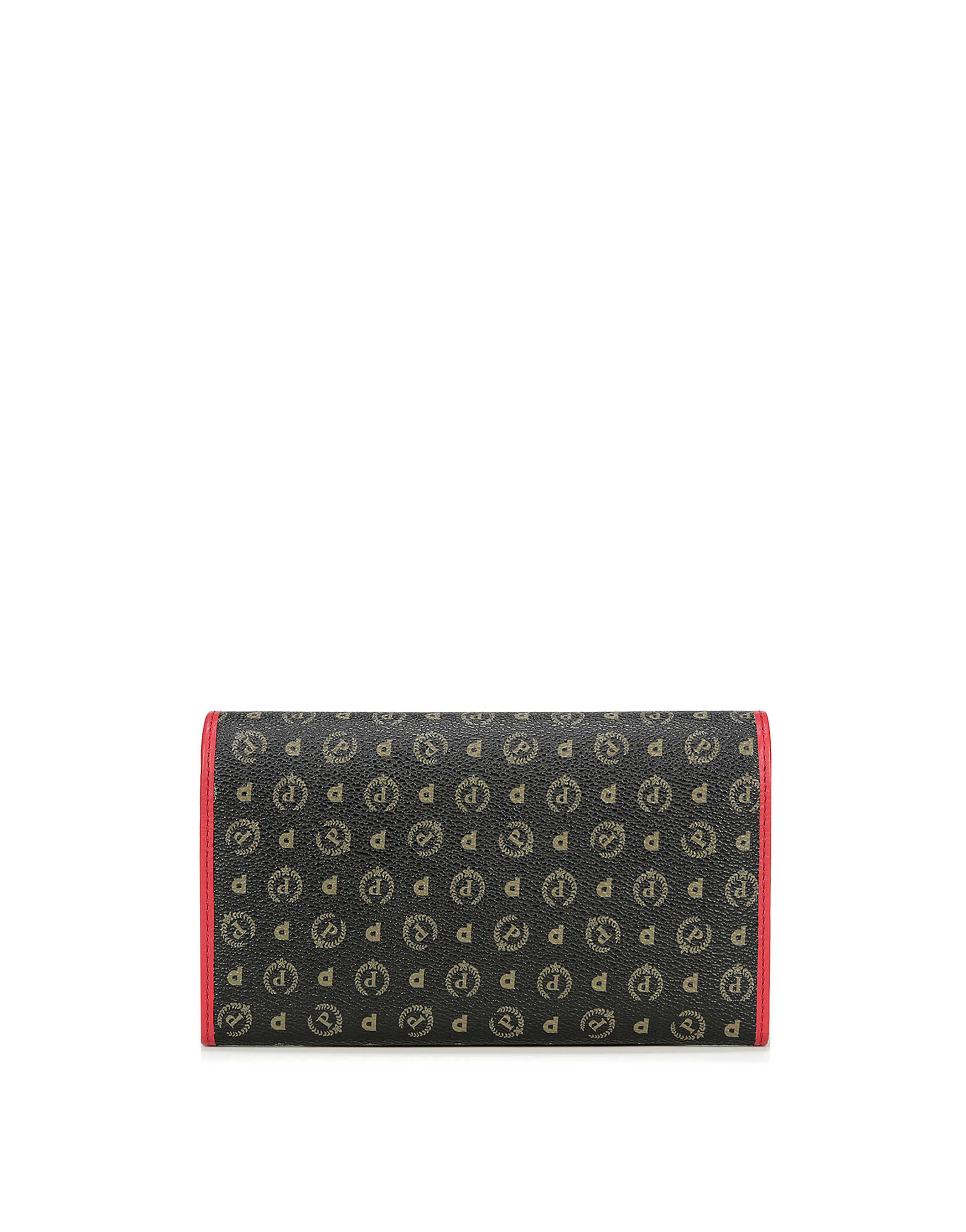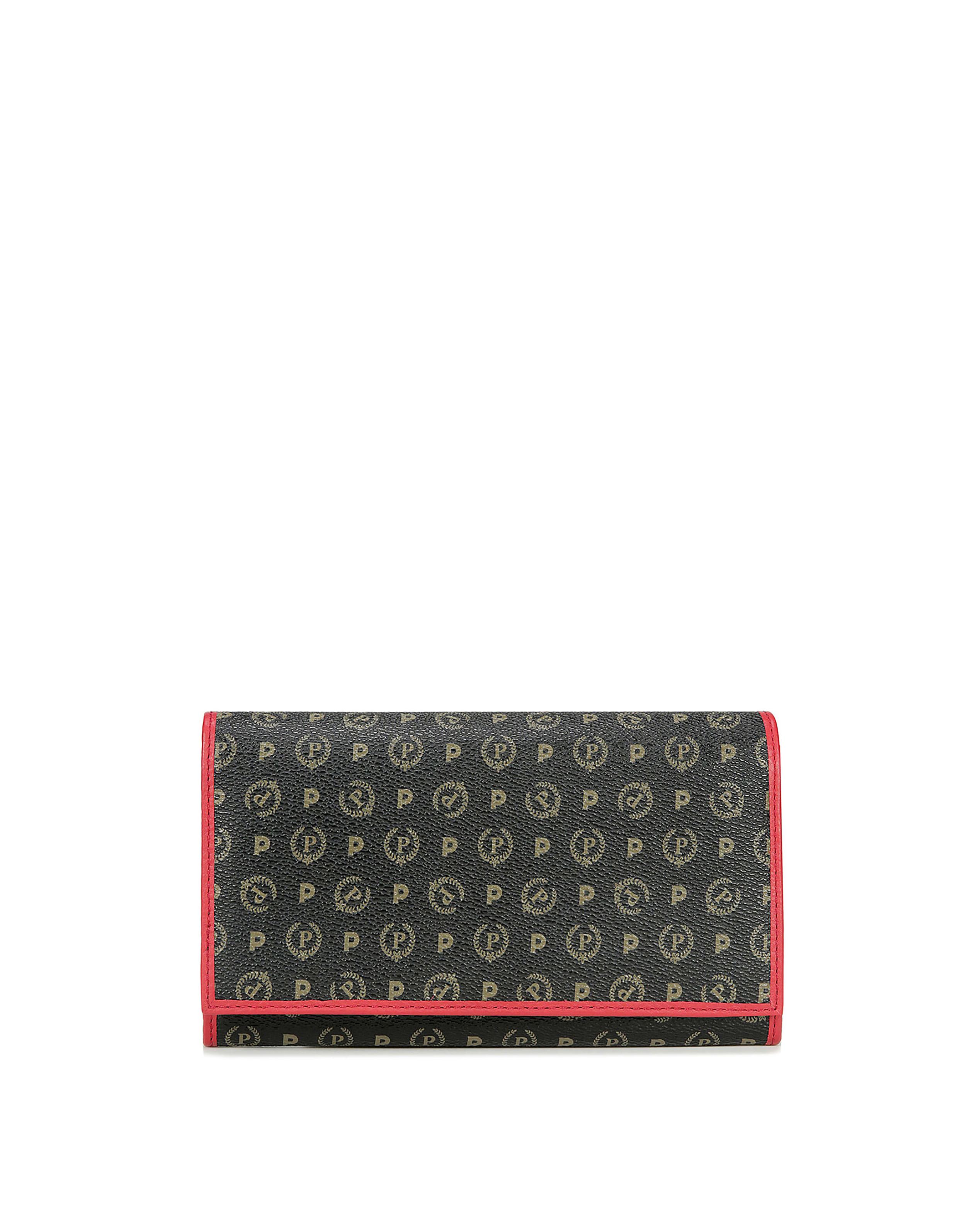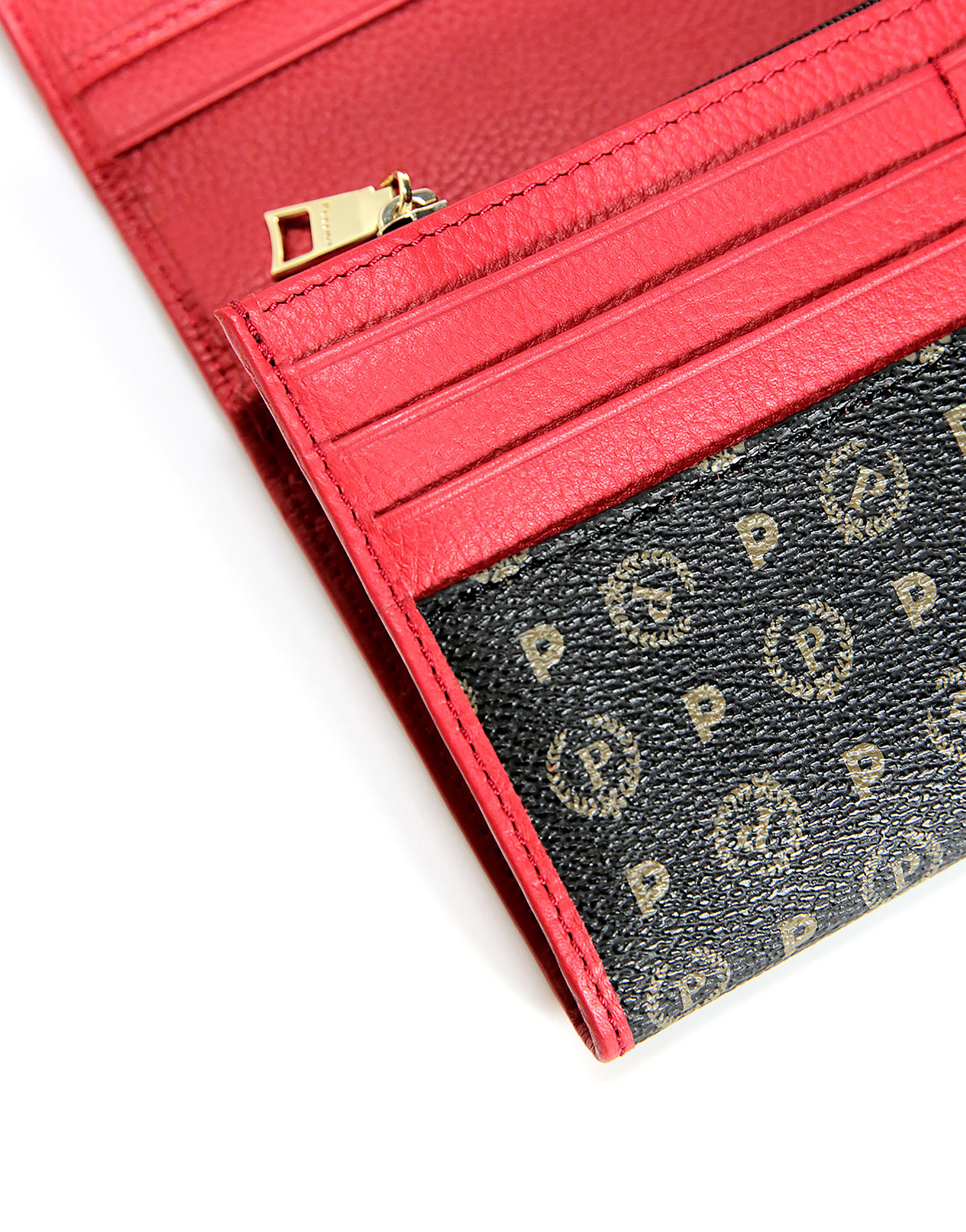 Portafoglio con patta collezione Heritage Logo classic. L'iconico monogramma all over dona un allure elegante e senza tempo. Tre scomparti, vano portamonete con zip e 16 vani porta carte