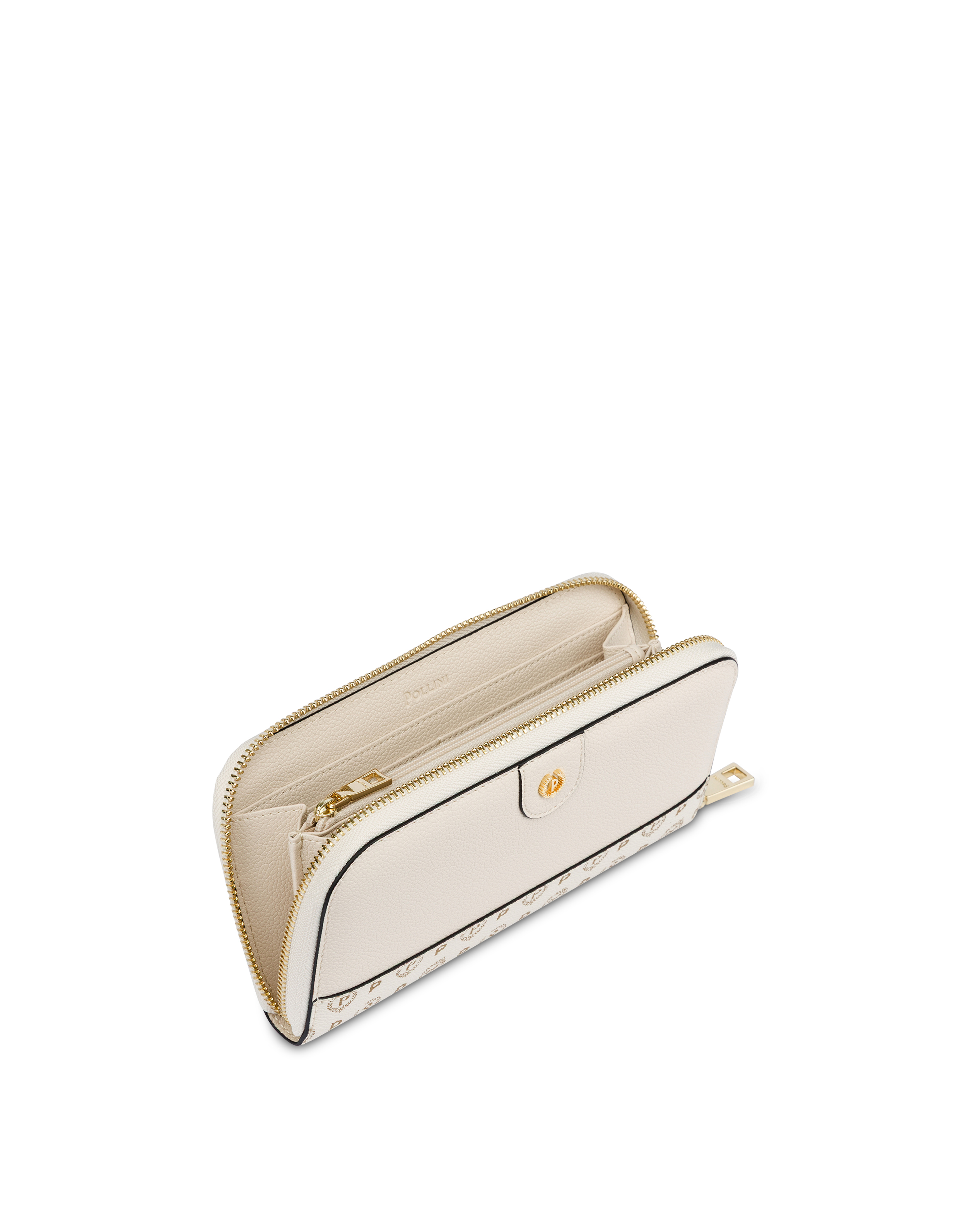 'Eleganza e funzionalità si fondono in questo portafoglio Zip Around, caratterizzato dal design sofisticato e dalla banda orizzontale con il motivo “Heritage”. La zip dorata assicura sicurezza senza rinunciare al fascino. L’interno è impeccabilmente organizzato con due ampi scomparti, una tasca portamonete centrale con zip e numerosi spazi per carte e documenti.
