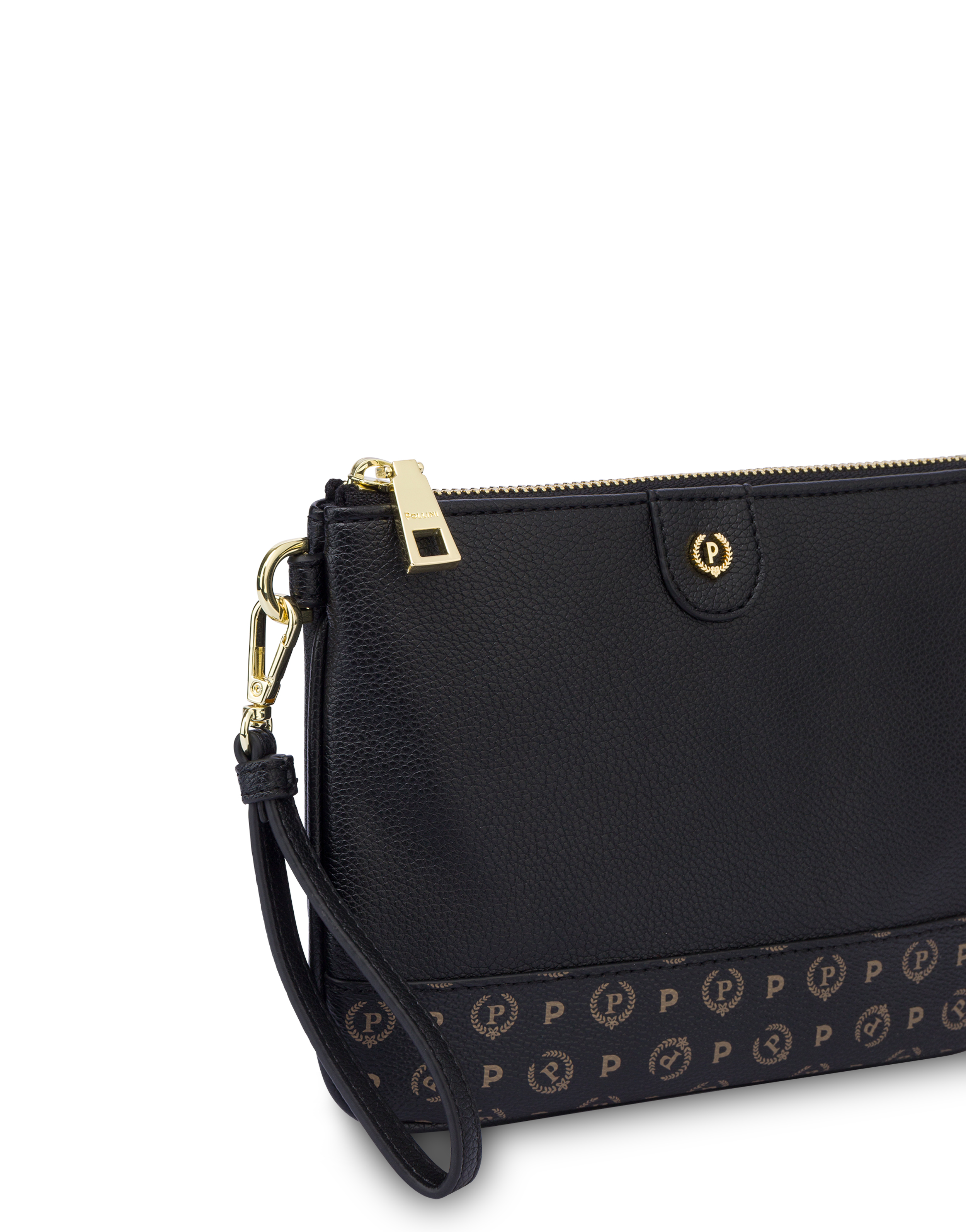 Un accessorio essenziale della piccola pelletteria firmata Pollini: il portamonete si distingue per la raffinata combinazione con il motivo Heritage. Il design orizzontale conferisce un tocco distintivo a questo modello compatto.