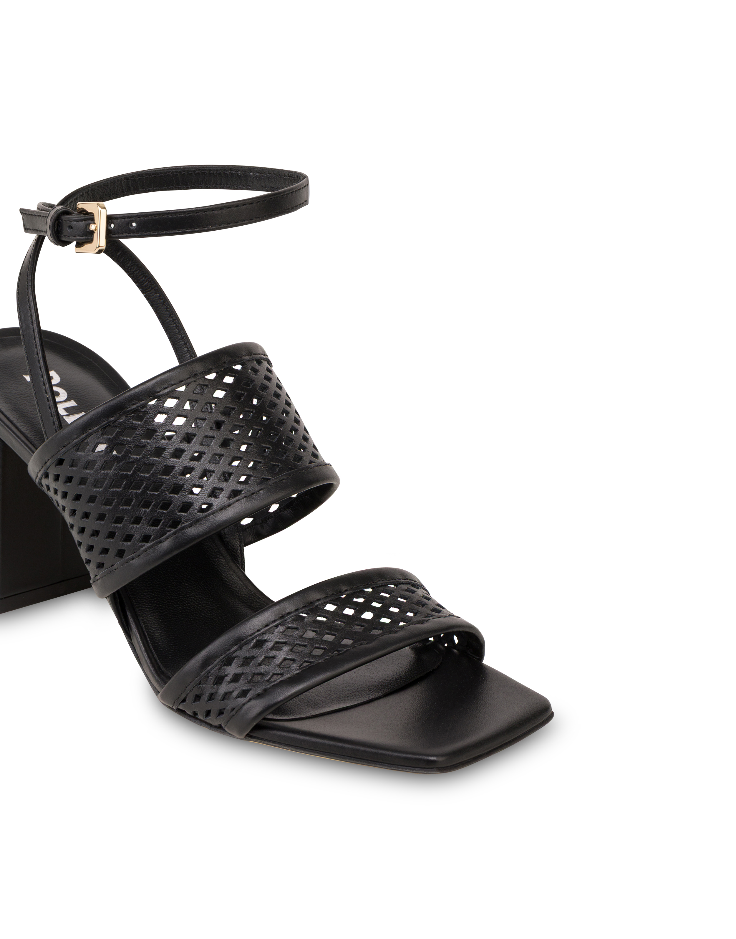 La pelle traforata dà vita a sandali Glam dal fascino elegante e femminile. Il tacco chunky aggiunge carattere e versatilità, rendendoli perfetti per accompagnare ogni momento della giornata. La tomaia avvolge il piede con leggerezza, valorizzando un design unico, ricercato e contemporaneo.