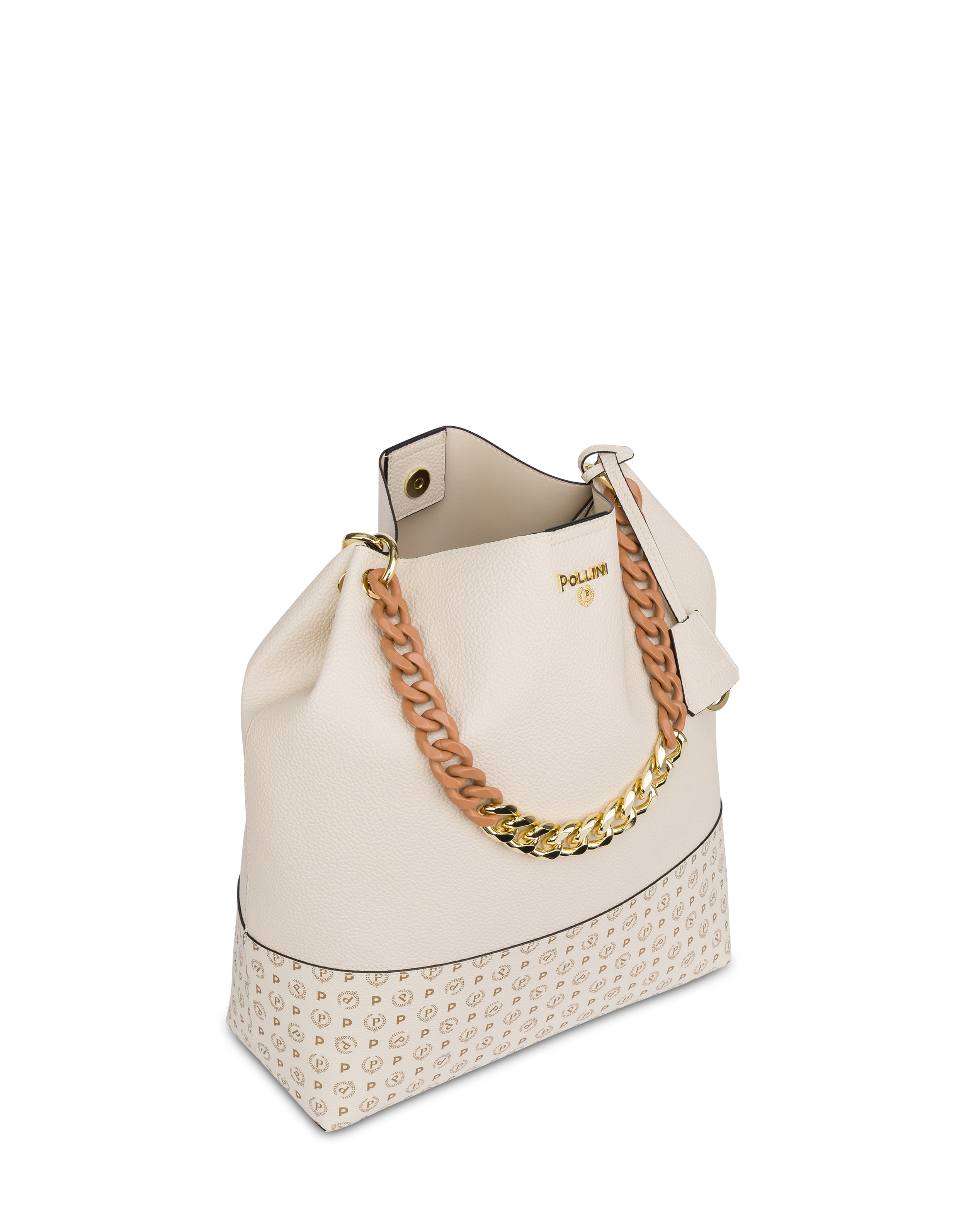 Eleganza senza tempo e dettagli distintivi definiscono la Shoulder Bag Darlene, un’icona di stile della collezione Pollini. Caratterizzata da una maxi catena ornamentale bi-color che dona un tocco contemporaneo e deciso, questa borsa unisce funzionalità e raffinatezza.Dotata di una pratica pouch interna e di un portachiavi a clochette coordinato, è l’accessorio ideale per completare look sia quotidiani che serali con un accento sofisticato. Un pezzo versatile e ricercato, pensato per chi ama distinguersi con stile.