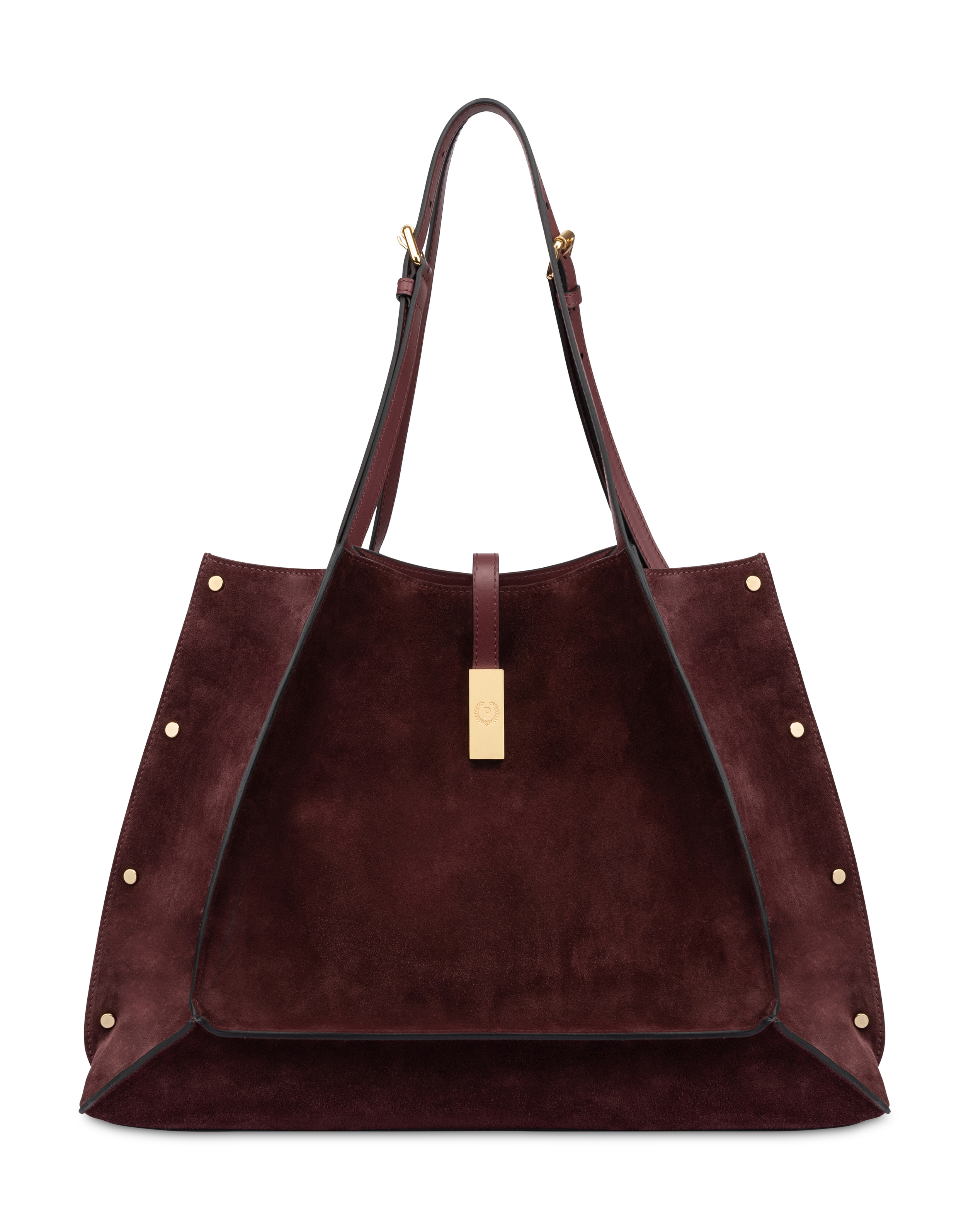 Icona senza tempo della collezione, la Double Handle Bag Austin unisce carattere e raffinatezza. Realizzata in crosta con riporti in vitello liscio, si distingue per i manici regolabili con fibbia in metallo e la chiusura a cinturino con calamita. Essenziale ma ricercata, è foderata e completa di tasca interna e label logata in pelle. Le borchie decorative e la placca con logo “P alloro” inciso donano un tocco distintivo. Portabilità versatile a mano o a spalla. Finiture in galvanica Gold.