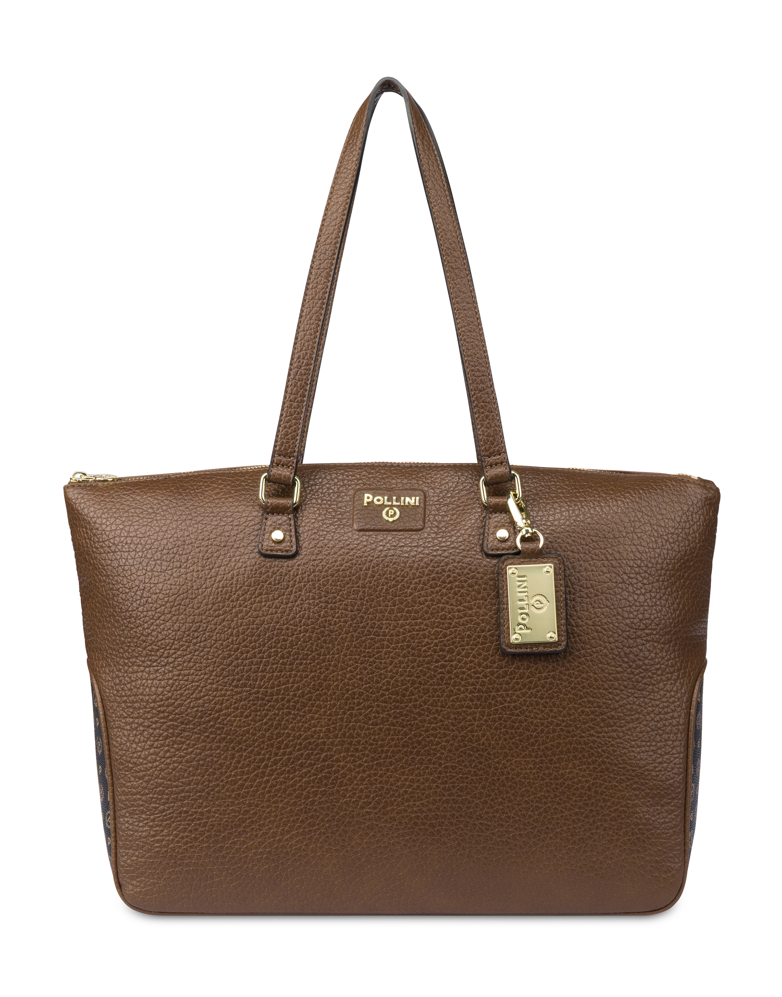 Raffinata e moderna, la Tote Bag Naja si distingue per l'equilibrio tra stile e funzionalità. Realizzata in un pregiato mix con motivo Heritage, è valorizzata dall’iconico maxi piping che ne sottolinea i volumi decisi. Ampia e pratica, presenta chiusura con zip, doppi manici e interno foderato con tasca con zip. Completa il design un charm removibile con targhetta dorata Pollini, dettaglio che aggiunge un tocco distintivo di luce e ricercatezza.