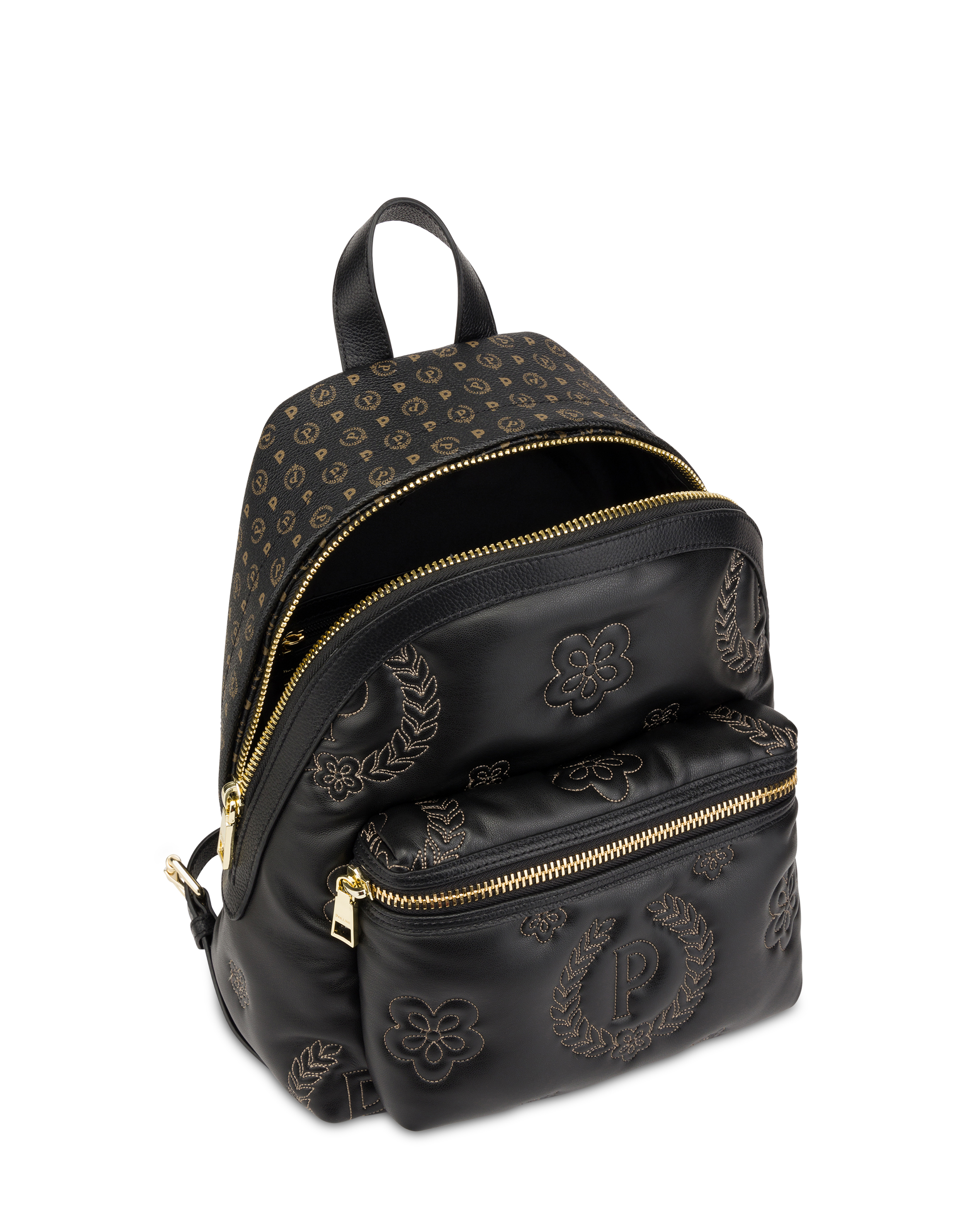 Zaino realizzato per l'esclusiva capsule collection Puffy Heritage. Il pattern Heritage, in dimensione maxi, viene ricamato in contrasto colore su un materiale ultra morbido, secondo la lavorazione capitonnè per conferire al modello un effetto puffy. Comoda tasca frontale con zip.